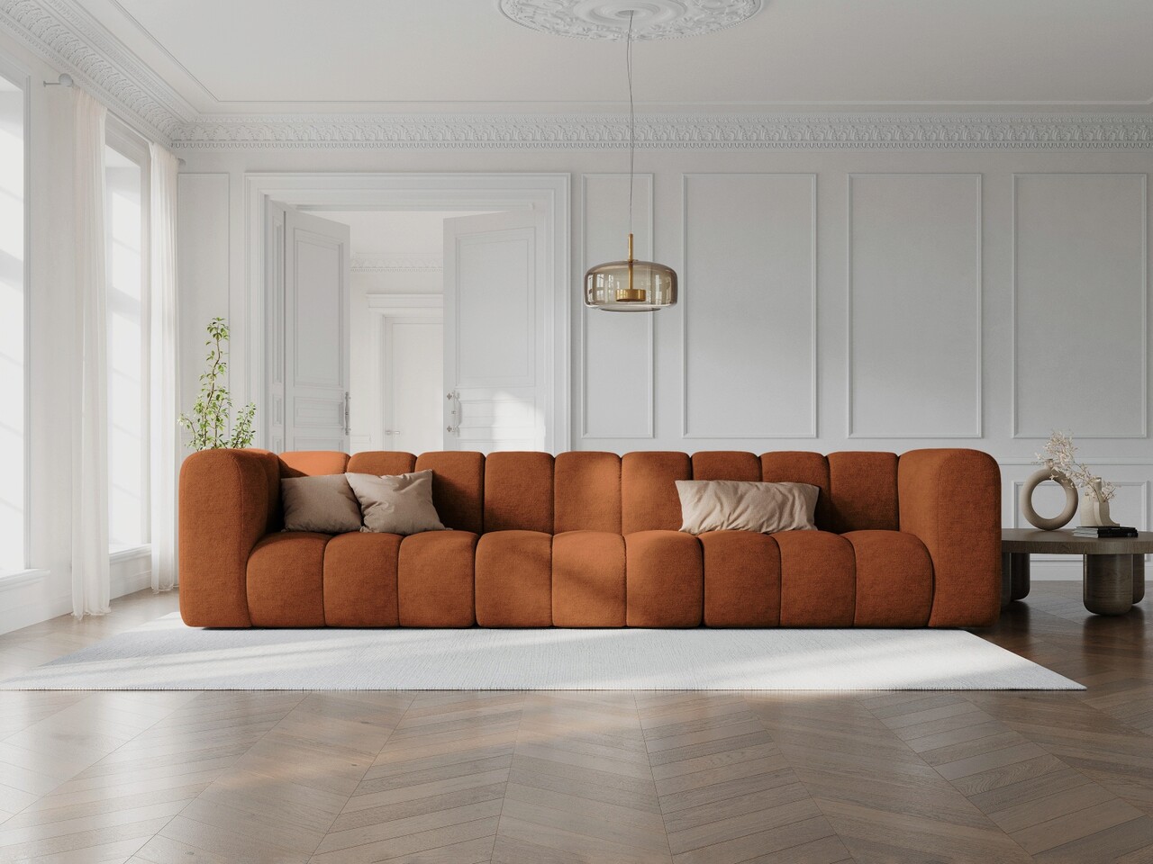 Canapea 5 locuri, Lupine, Micadoni Home, BL, 318x87x70 cm, poliester chenille, aramiu