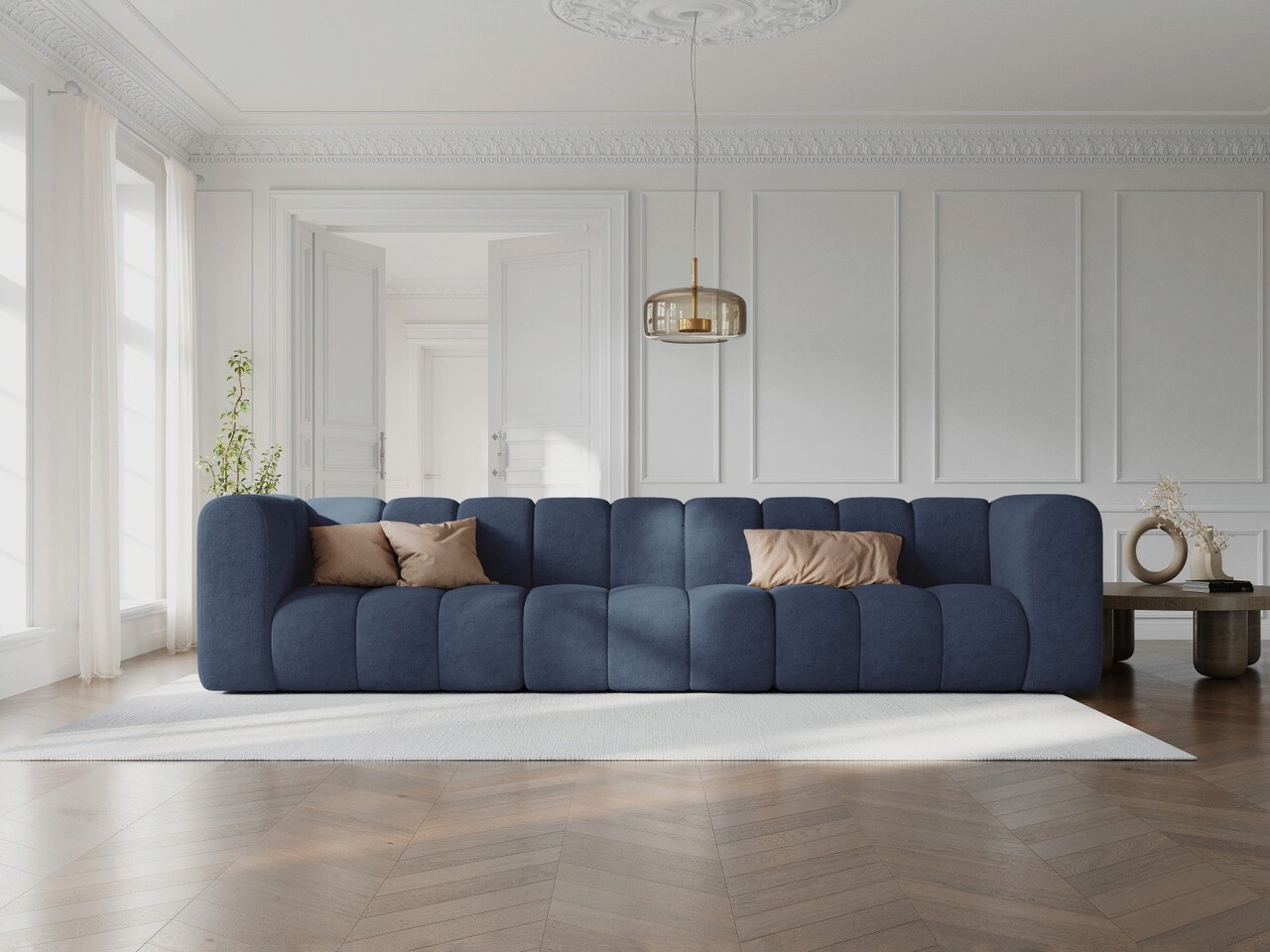 Canapea 5 locuri, Lupine, Micadoni Home, BL, 318x87x70 cm, poliester chenille, albastru