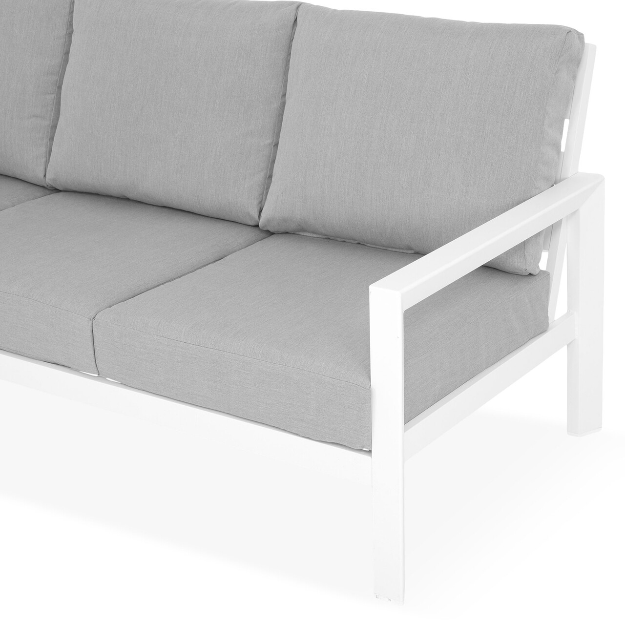 Canapea cu 3 locuri pentru gradina/terasa Matzo, 207x88x87 cm, aluminiu, alb/gri