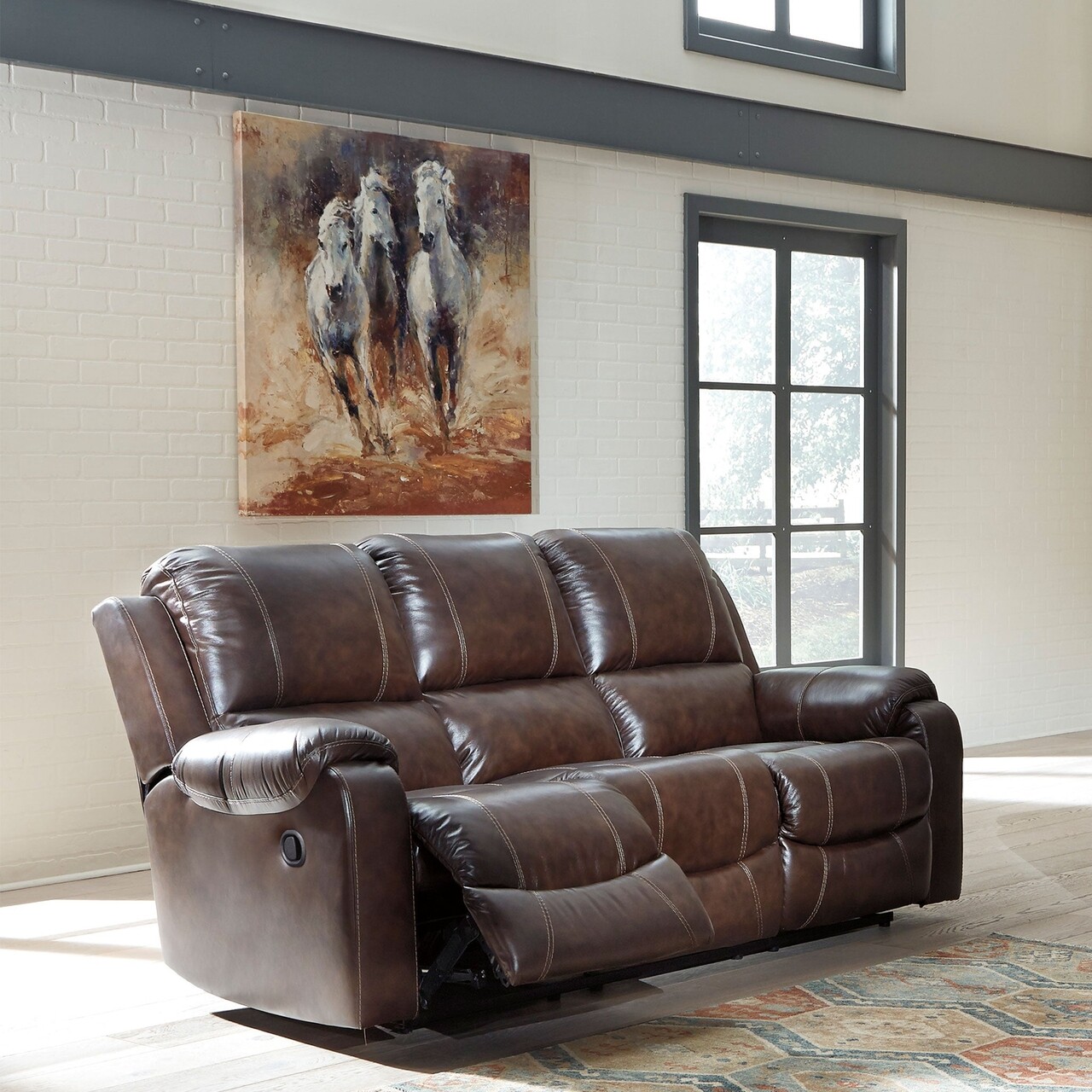 Canapea cu 3 locuri si cu 3 reclinere manuale, Tucson, L.218 l.99 H.102, piele/piele ecologica, maro