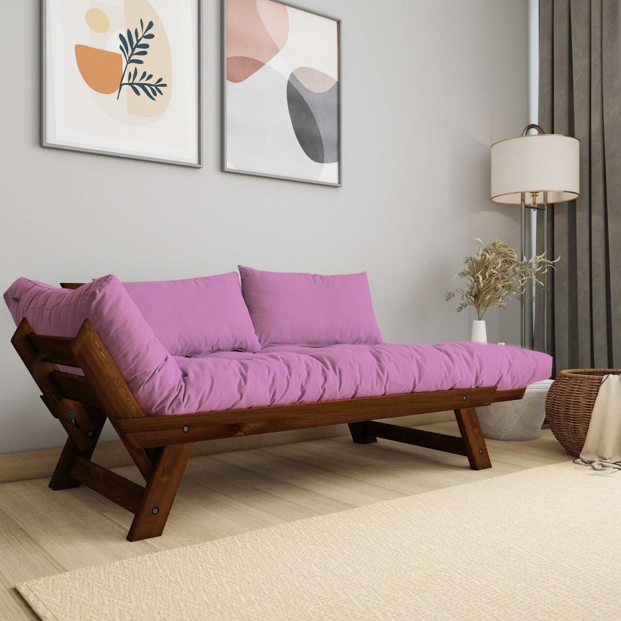 Canapea de gradina cu 2 locuri, Hanah Home, CPT8165-210, Nuc / Roz