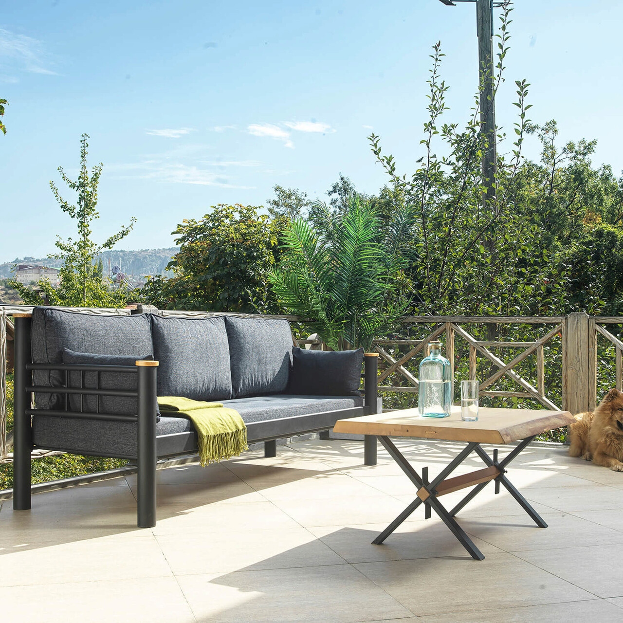 Canapea de gradina cu 3 locuri, Heaven, Kappis, 215x86x80 cm, Negru / Antracit