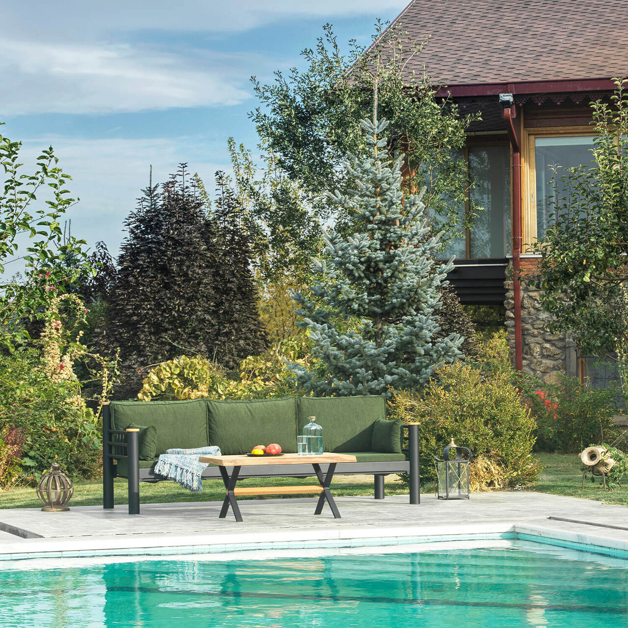 Canapea de gradina cu 3 locuri, Heaven, Kappis, 215x86x80 cm, Negru/Verde