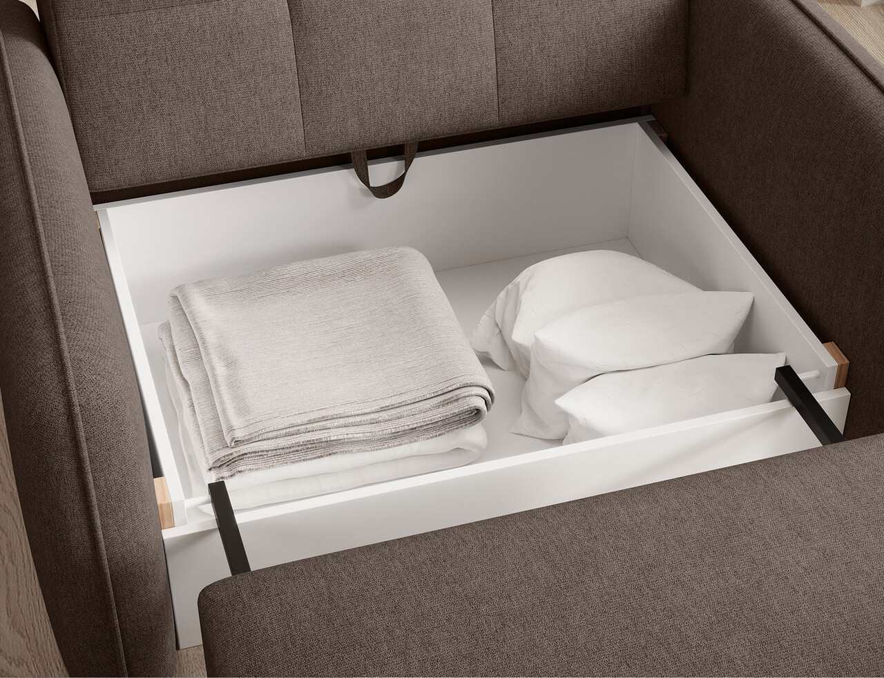 Unul dintre avantajele sale principale este functia de pat: printr-un mecanism simplu de extindere, canapeaua Laine se transforma rapid intr-un pat confortabil, fiind solutia perfecta pentru oaspeti neasteptati sau pentru locuintele cu spatiu limitat.