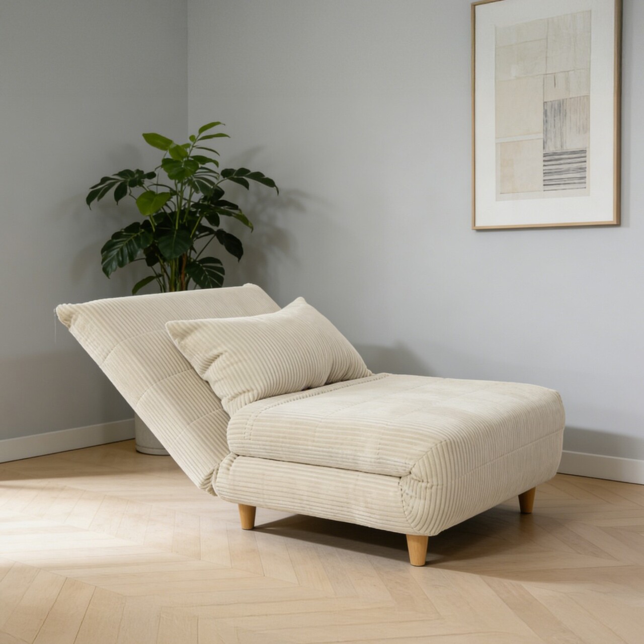 Canapea extensibila 1 loc Solace, Homla, 83x91x84 cm, MDF/catifea din poliester, ecru