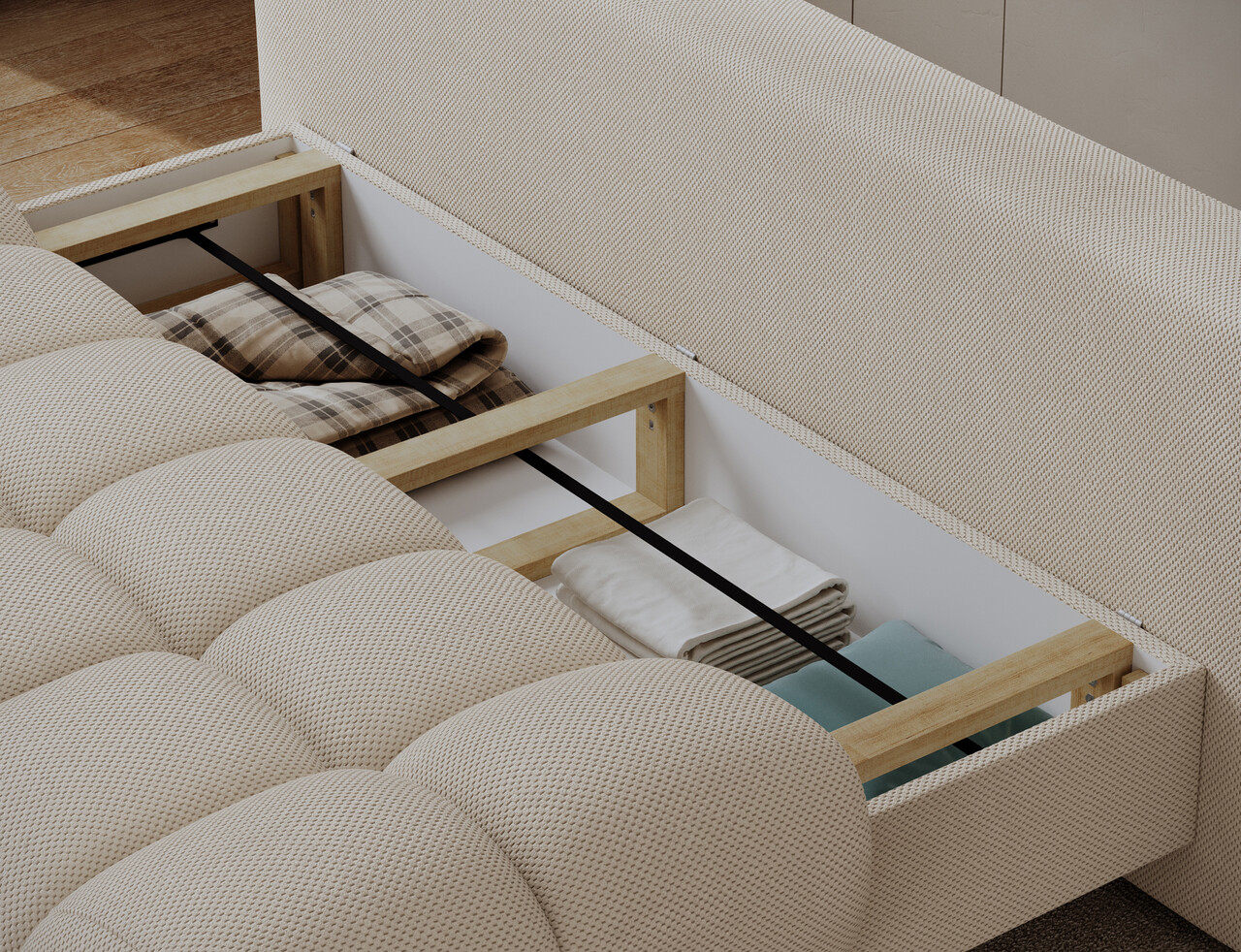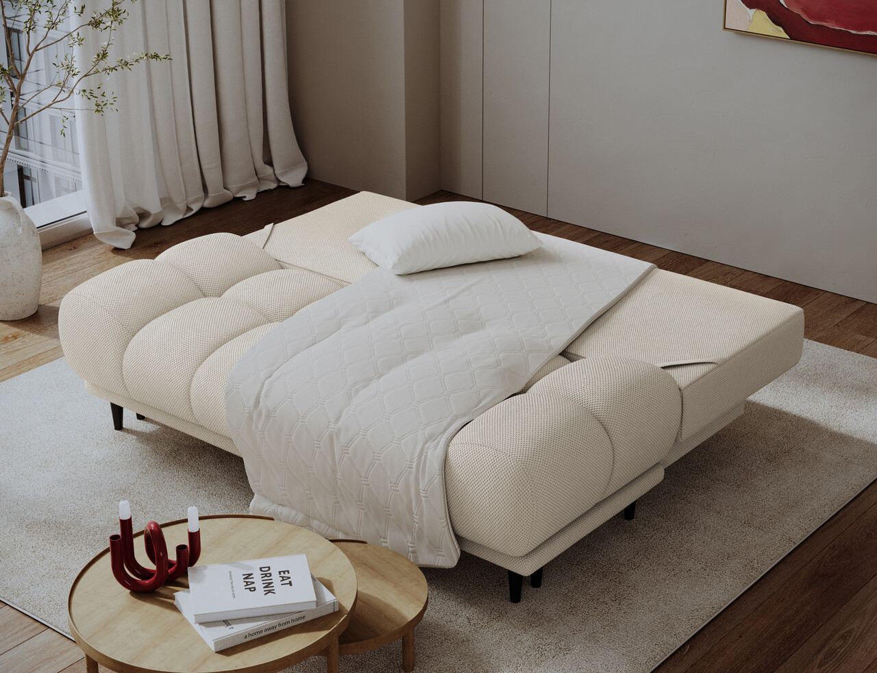 Canapea extensibila 2 locuri ELTAP, Guavio, 210x77x97 cm, lemn/poliester, bej