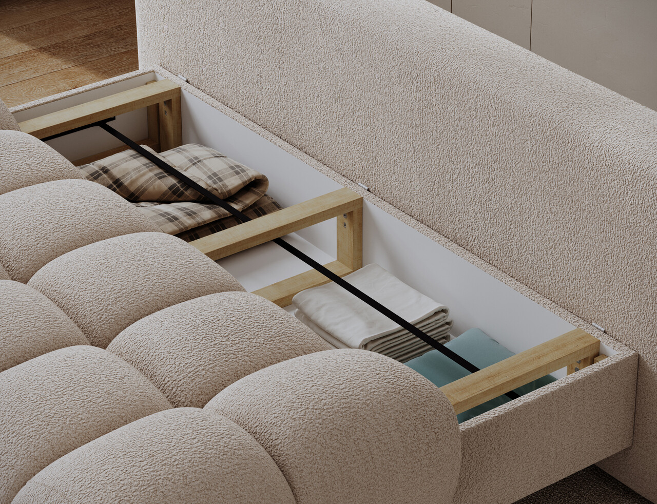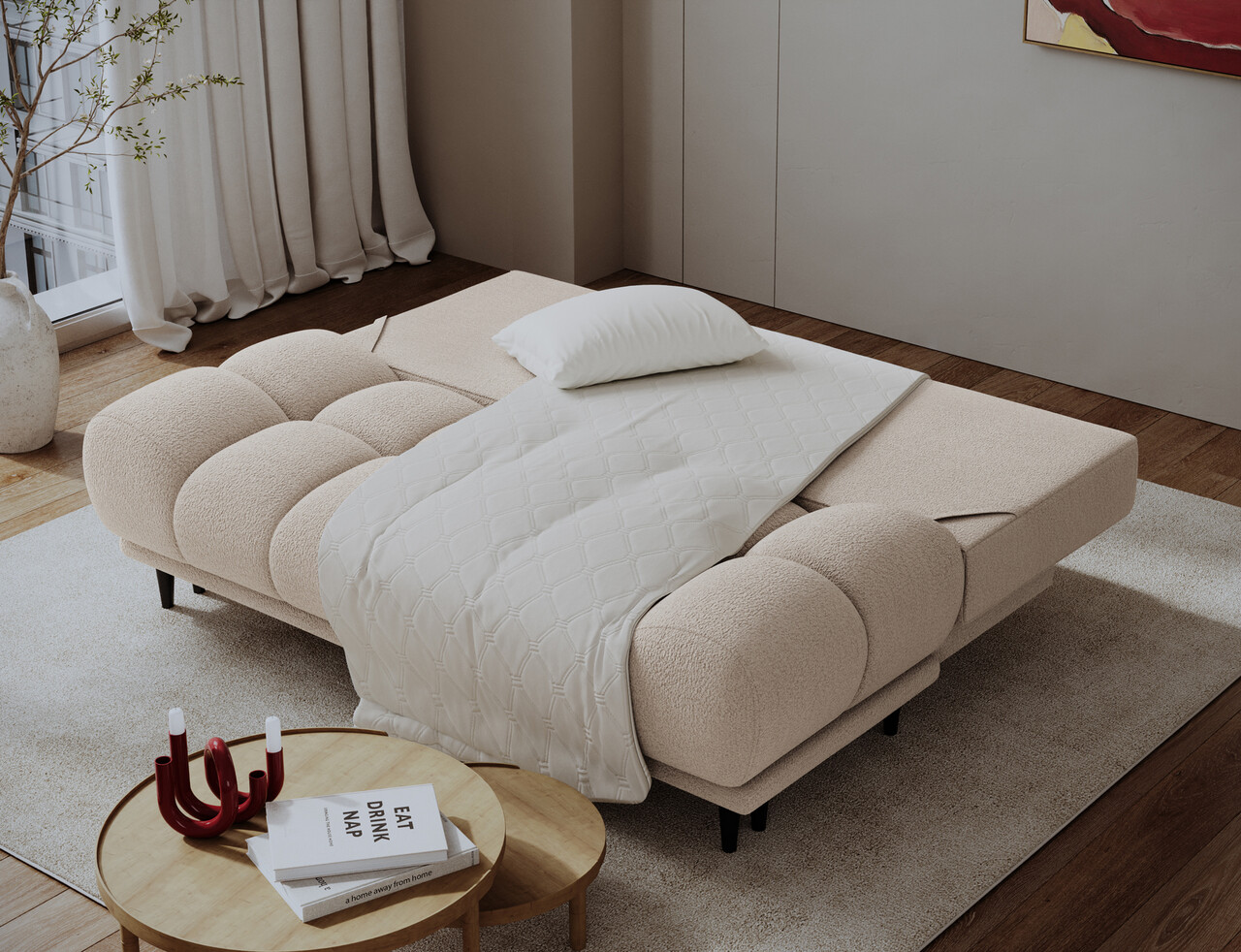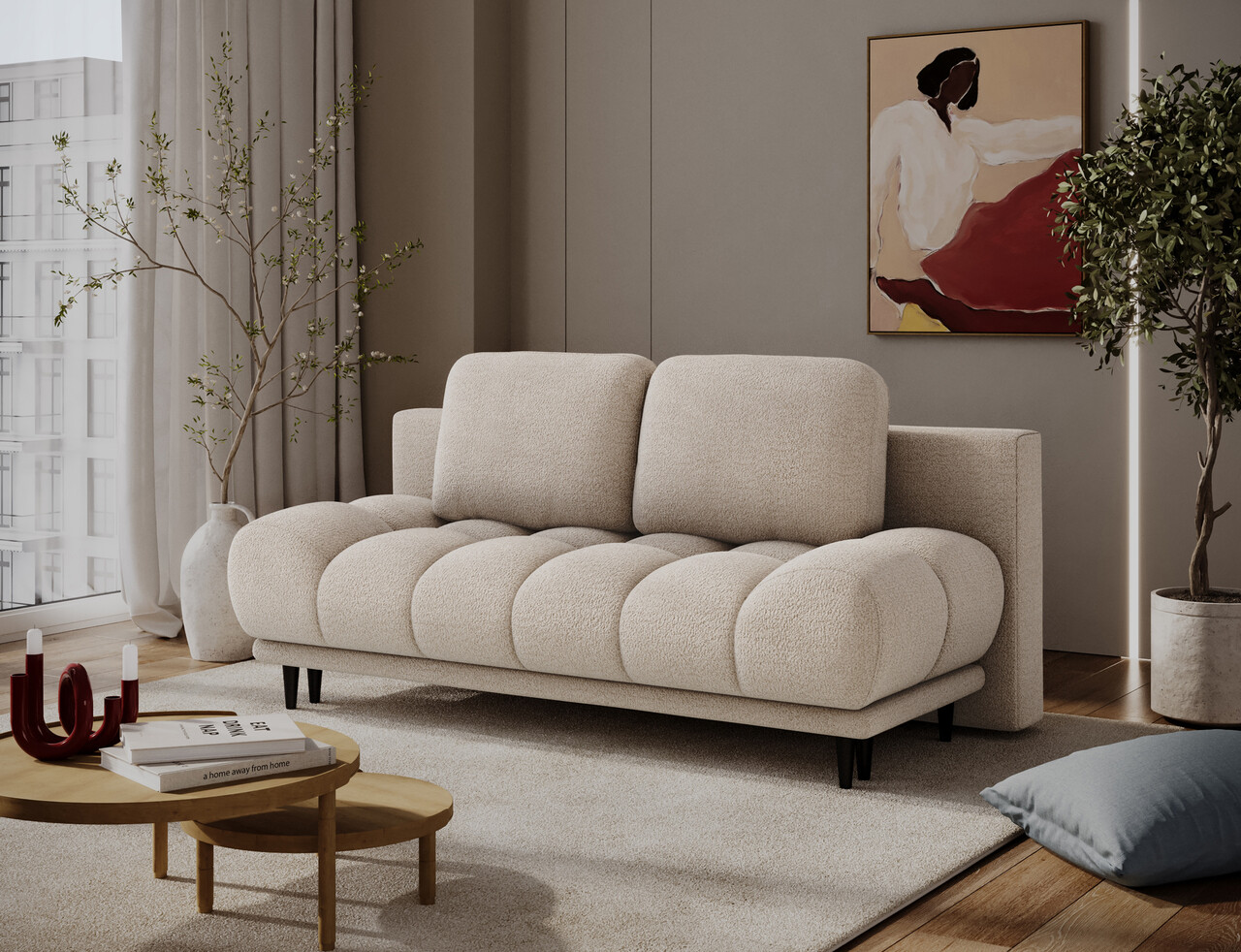 Canapea extensibila 2 locuri ELTAP, Guavio, 210x77x97 cm, lemn/poliester, bej inchis