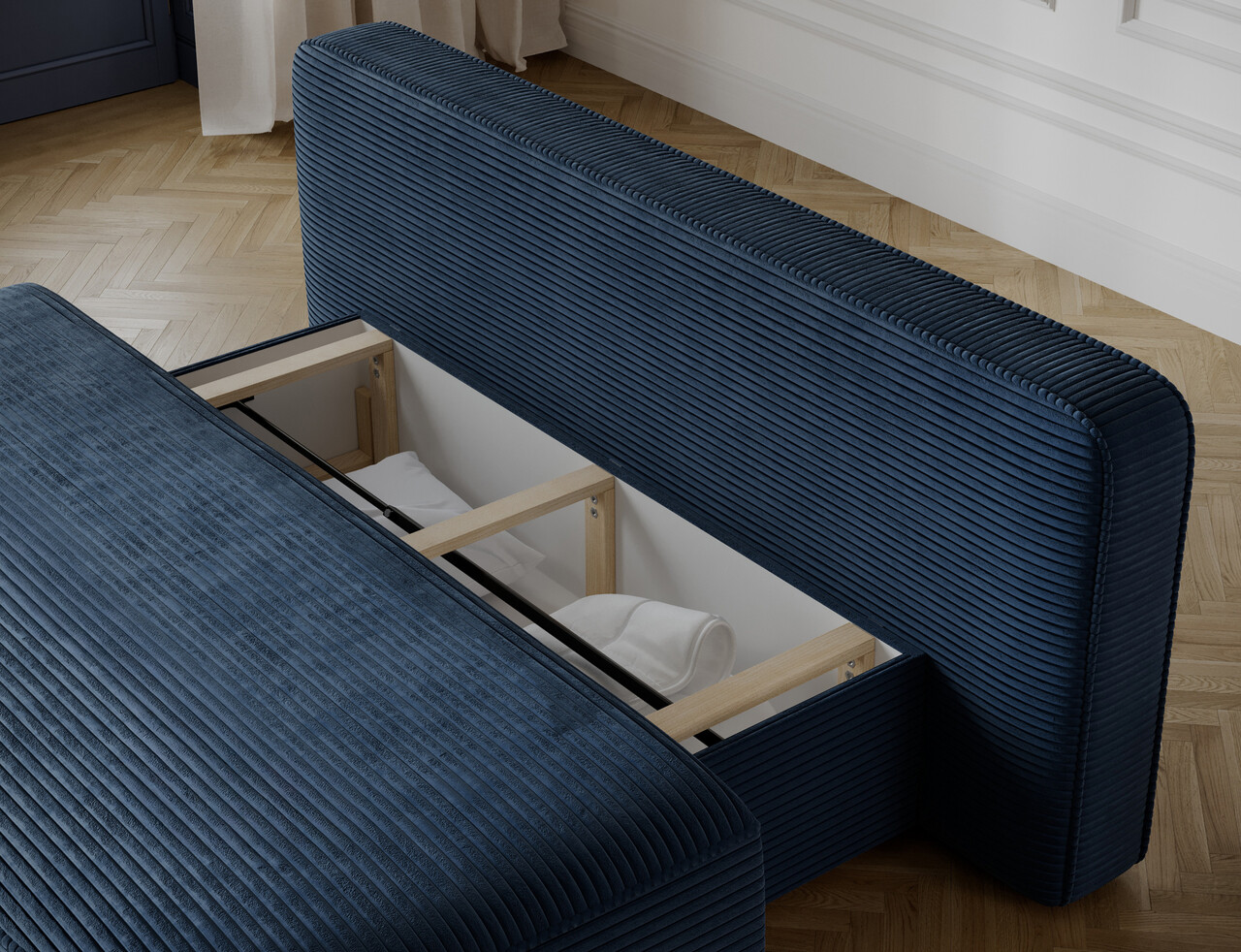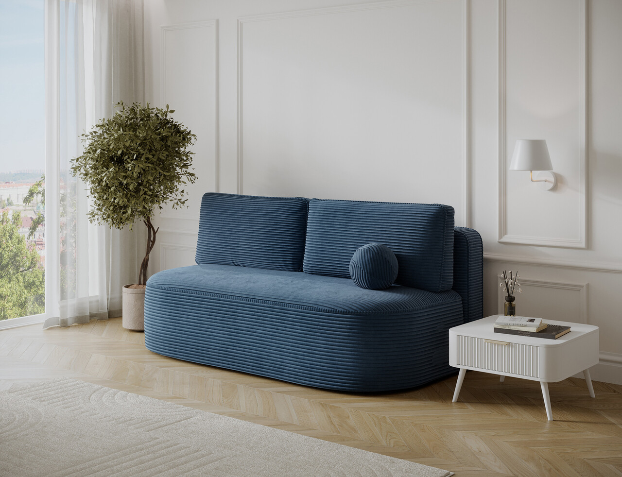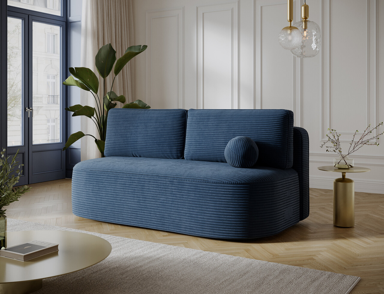 Canapea extensibila 2 locuri ELTAP, Lilana, 193x96x93 cm, lemn/poliester, albastru
