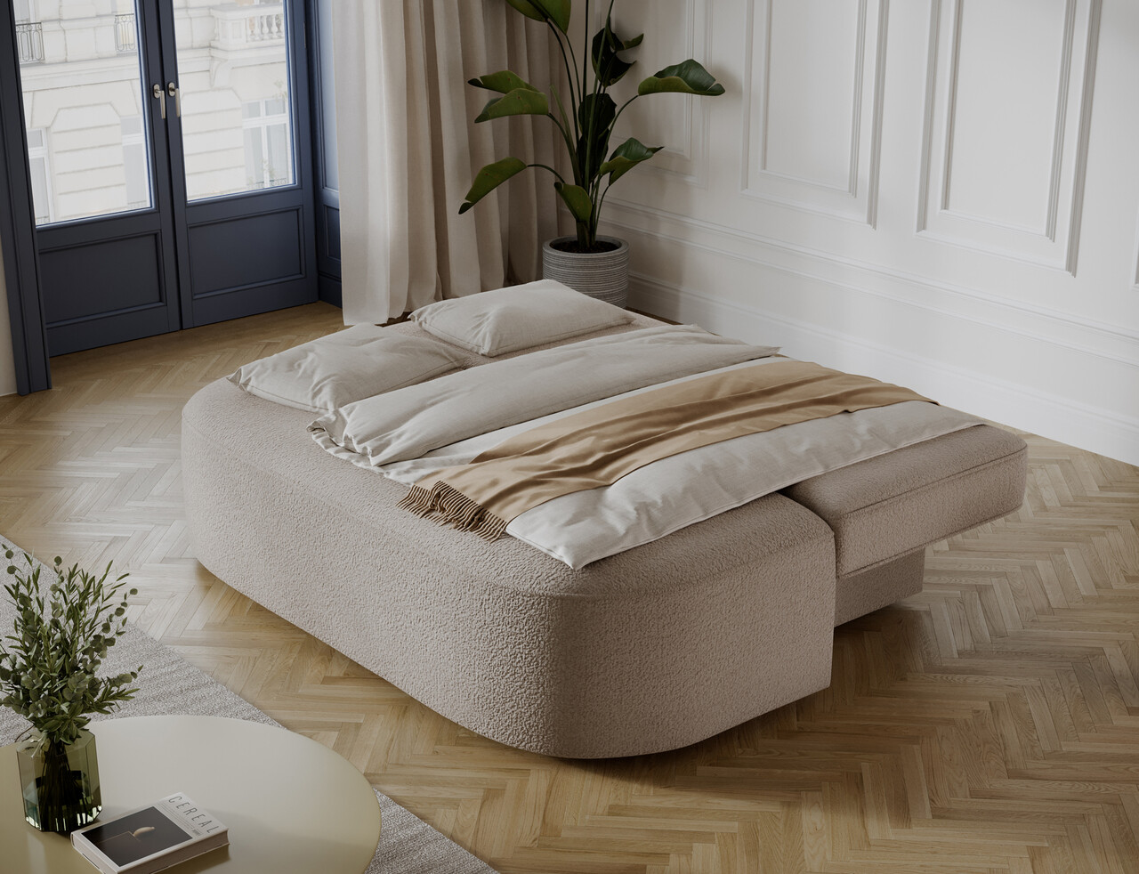 Canapea extensibila 2 locuri ELTAP, Lilana, 193x96x93 cm, lemn/poliester, bej