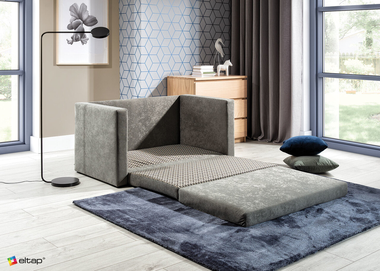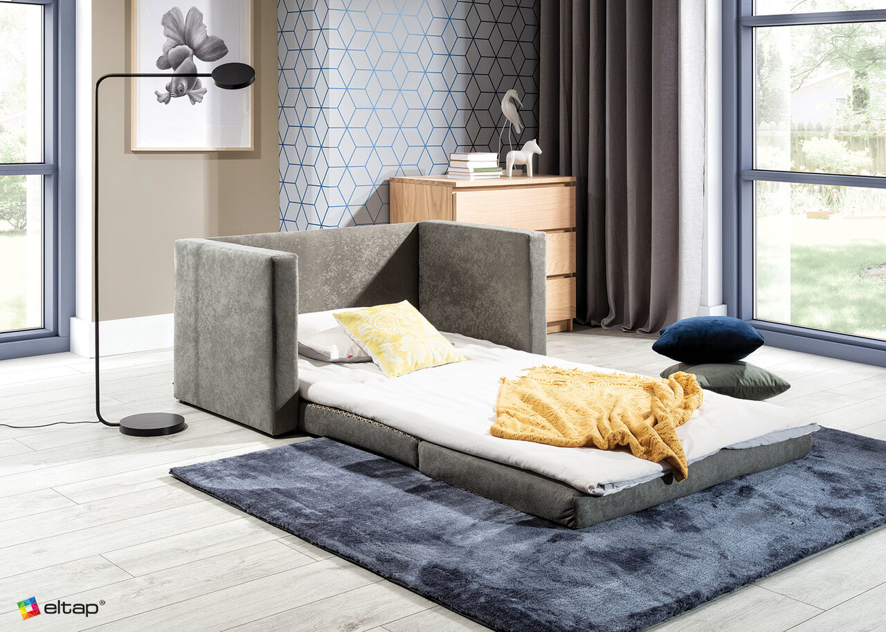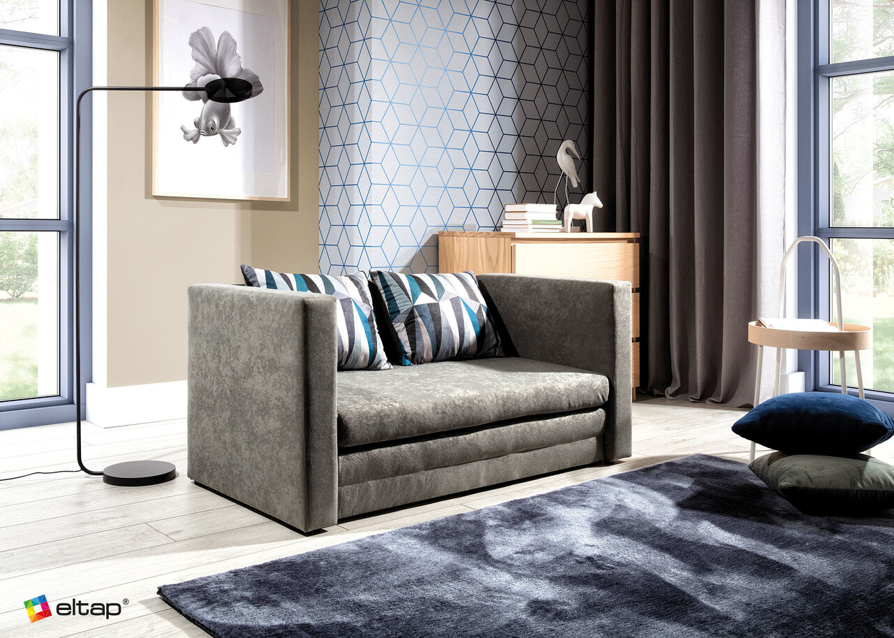 Canapea extensibila 2 locuri, ELTAP, Neva, 132x70x62 cm, lemn/poliester, gri