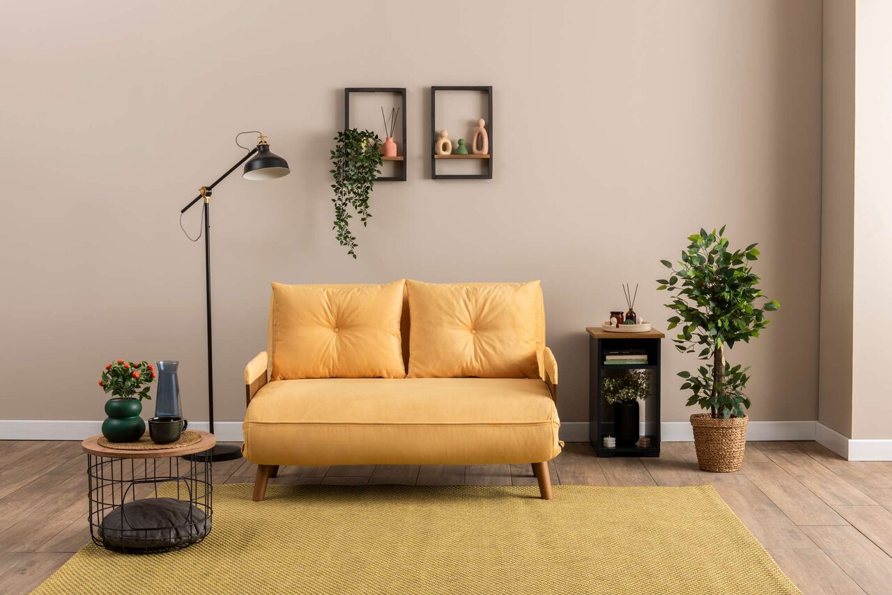 Canapea extensibila 2 locuri, Futon, 859FTN2720, Metal , Galben mustar