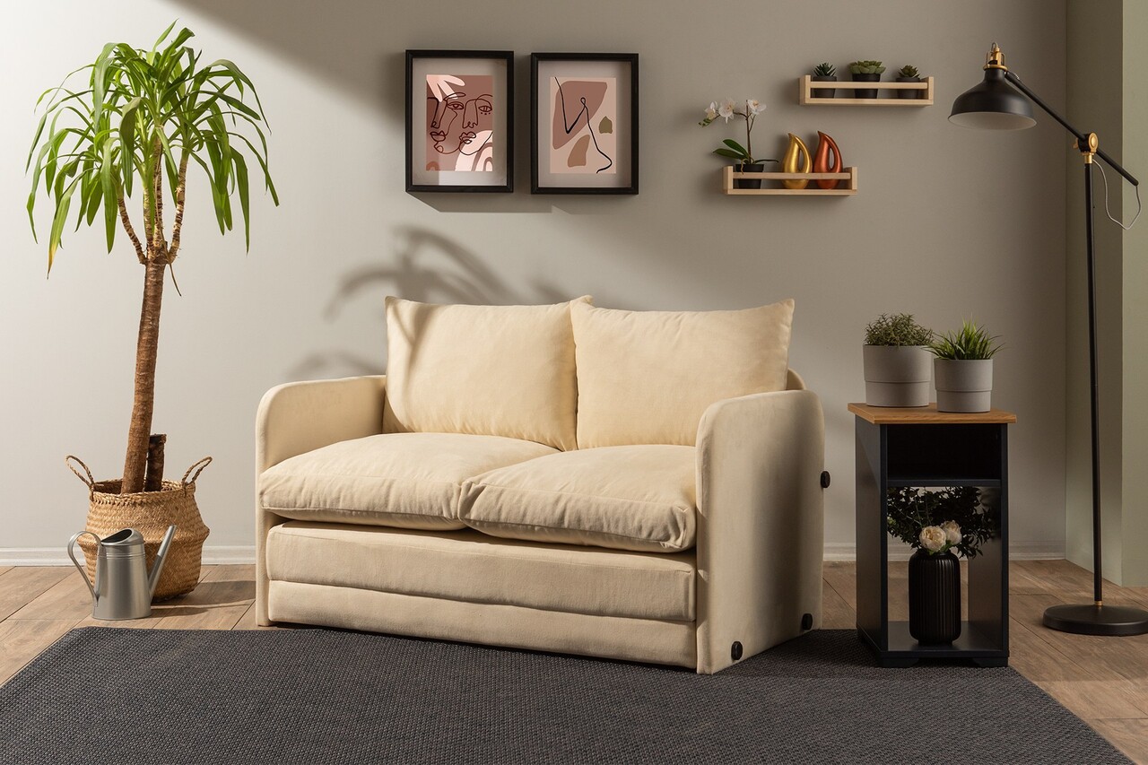 Canapea extensibila 2 locuri, Futon, 859FTN2872, Metal , Crem