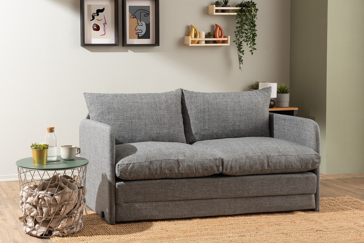 Canapea extensibila 2 locuri, Futon, 859FTN2888, Metal , Gri deschis