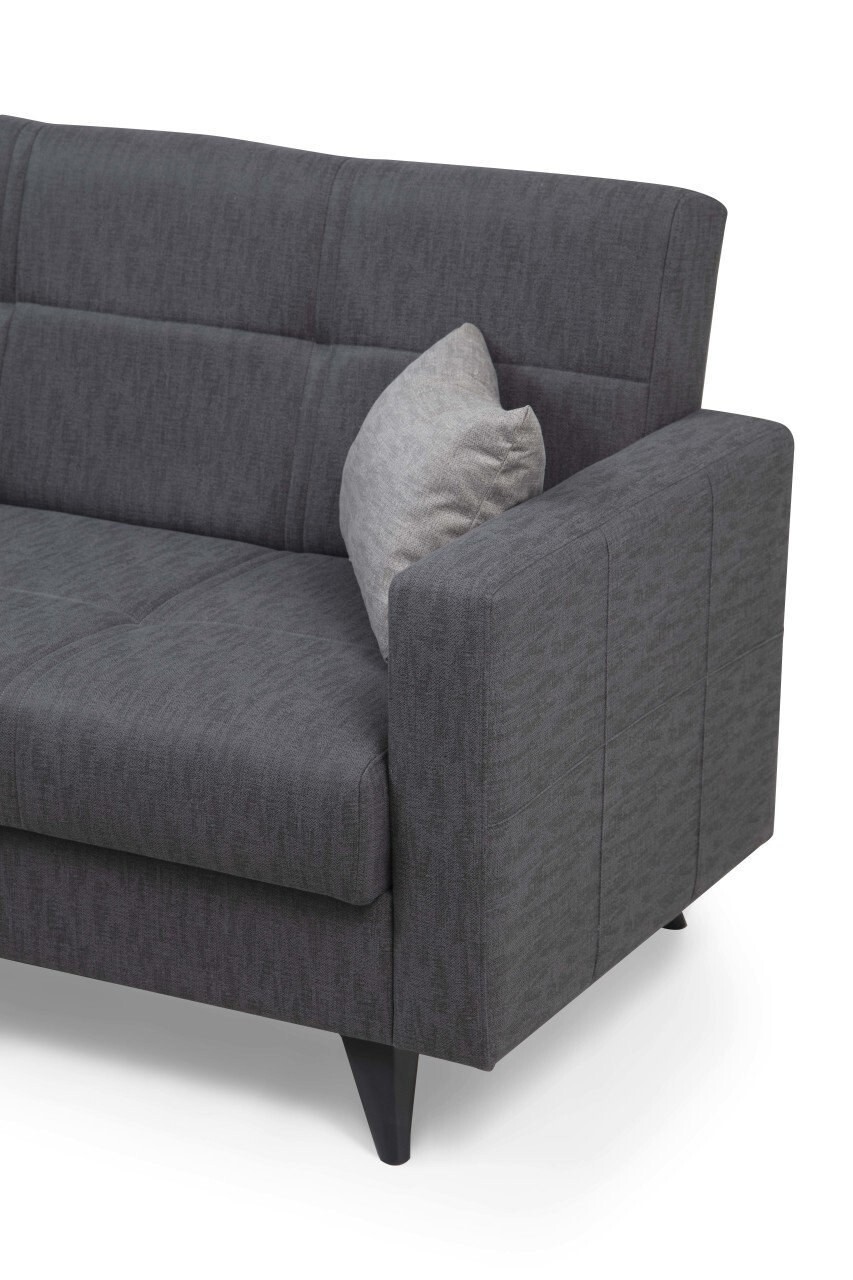 Canapea extensibila 2 locuri, Misty, 730MST1108, Metal / Lemn, Gri inchis