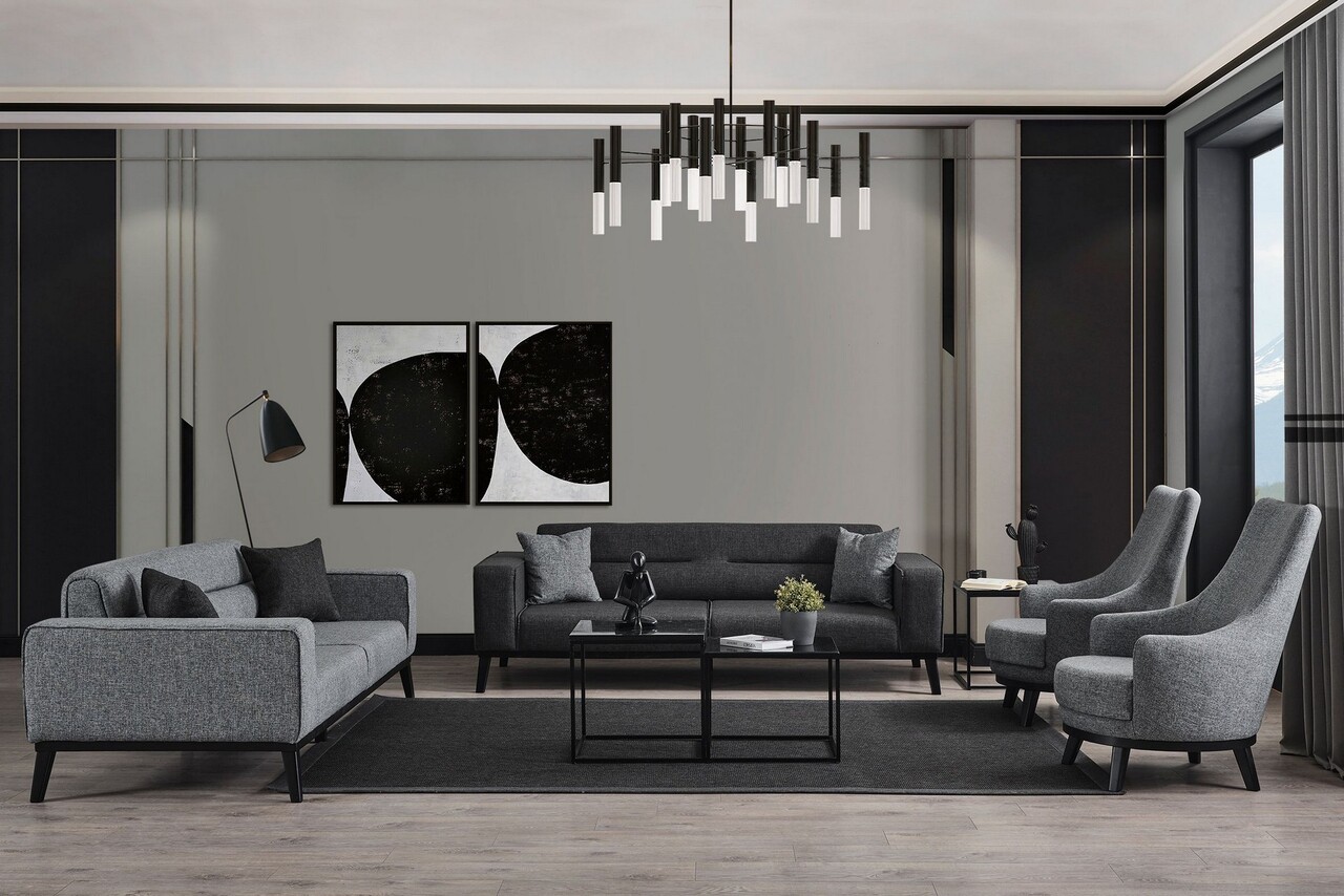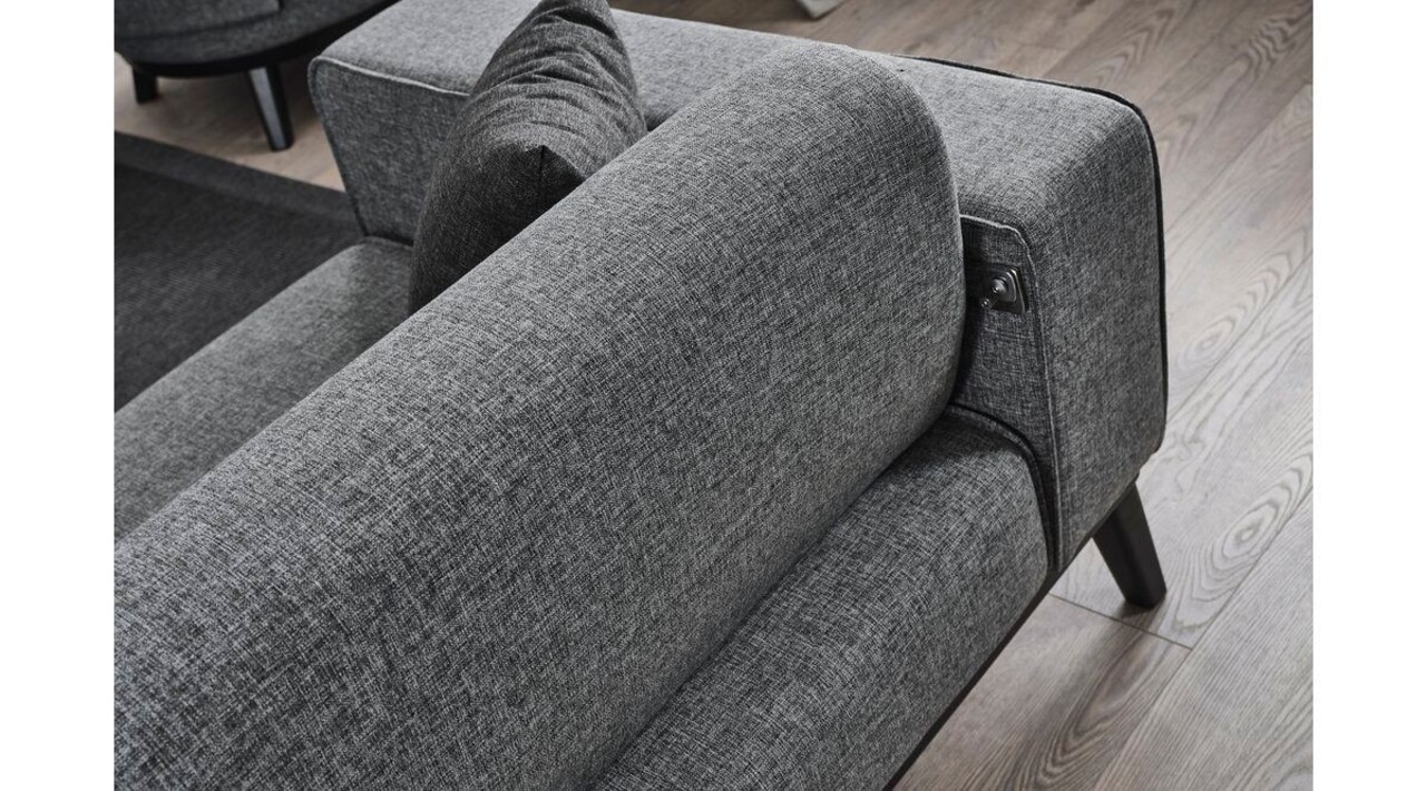 Canapea extensibila 3 locuri, Artie, 560ARE2904, Lemn de fag / PAL, Gri deschis
