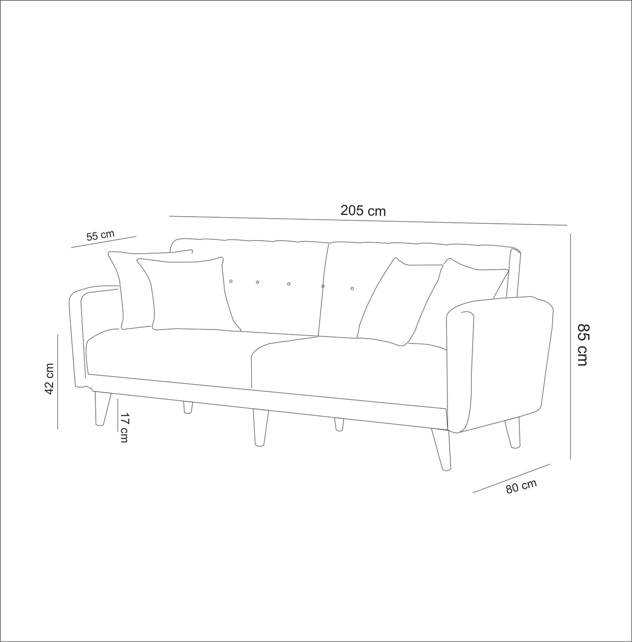 Latime: 205 cm Inaltime: 85 cm Adancime: 80 cm
