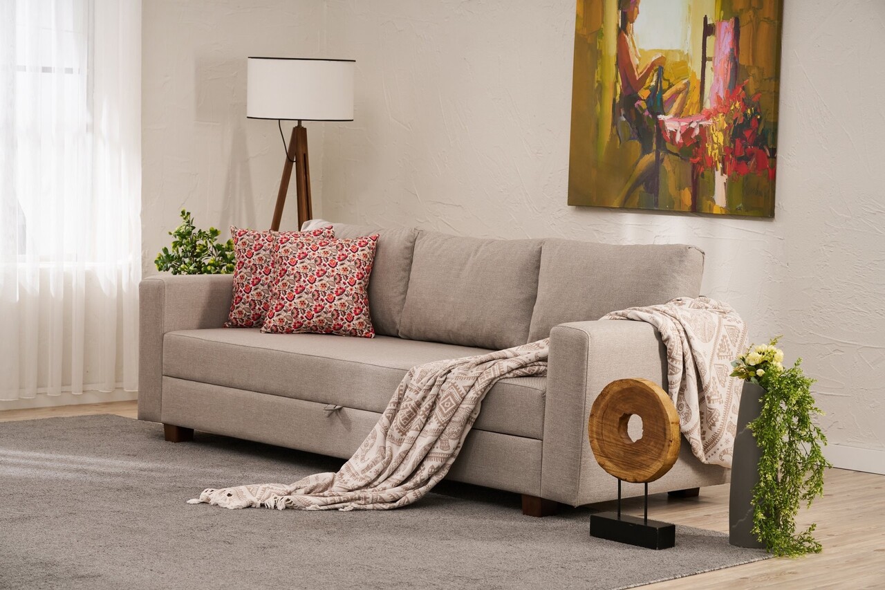 Canapea extensibila 3 locuri, Balcab Home, 825BLC5248, Lemn / MDF / PAL, Bej