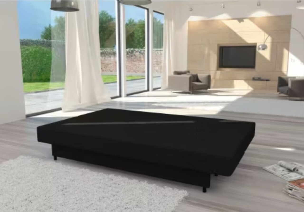 Canapea extensibila 3 locuri ELTAP, Amaza, 190x82x83 cm, lemn/poliester, negru