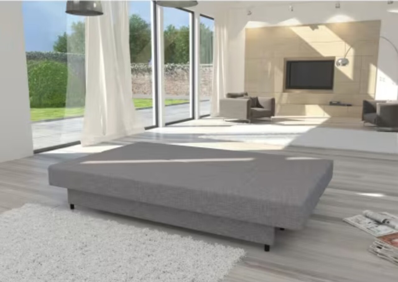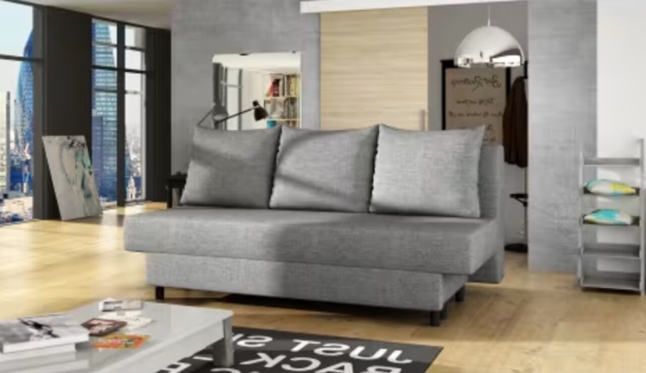 Canapea extensibila 3 locuri ELTAP, Amaza, 190x82x83 cm, lemn/poliester, gri deschis