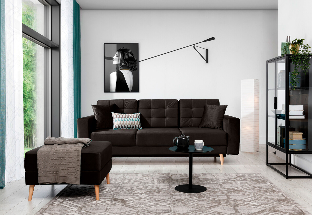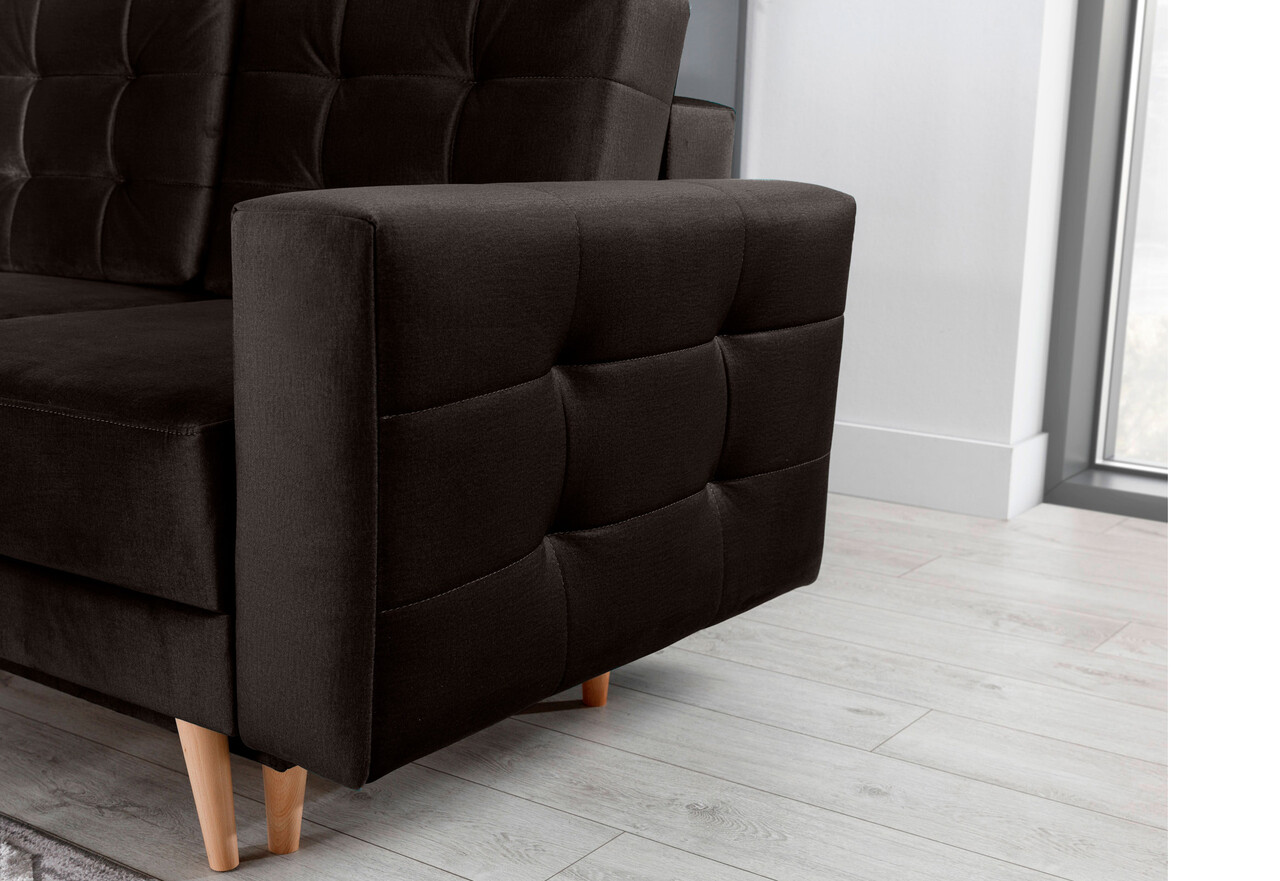 Canapea extensibila 3 locuri ELTAP, Ask12, Asgard, 233x92x93 cm, lemn/poliester, maro inchis