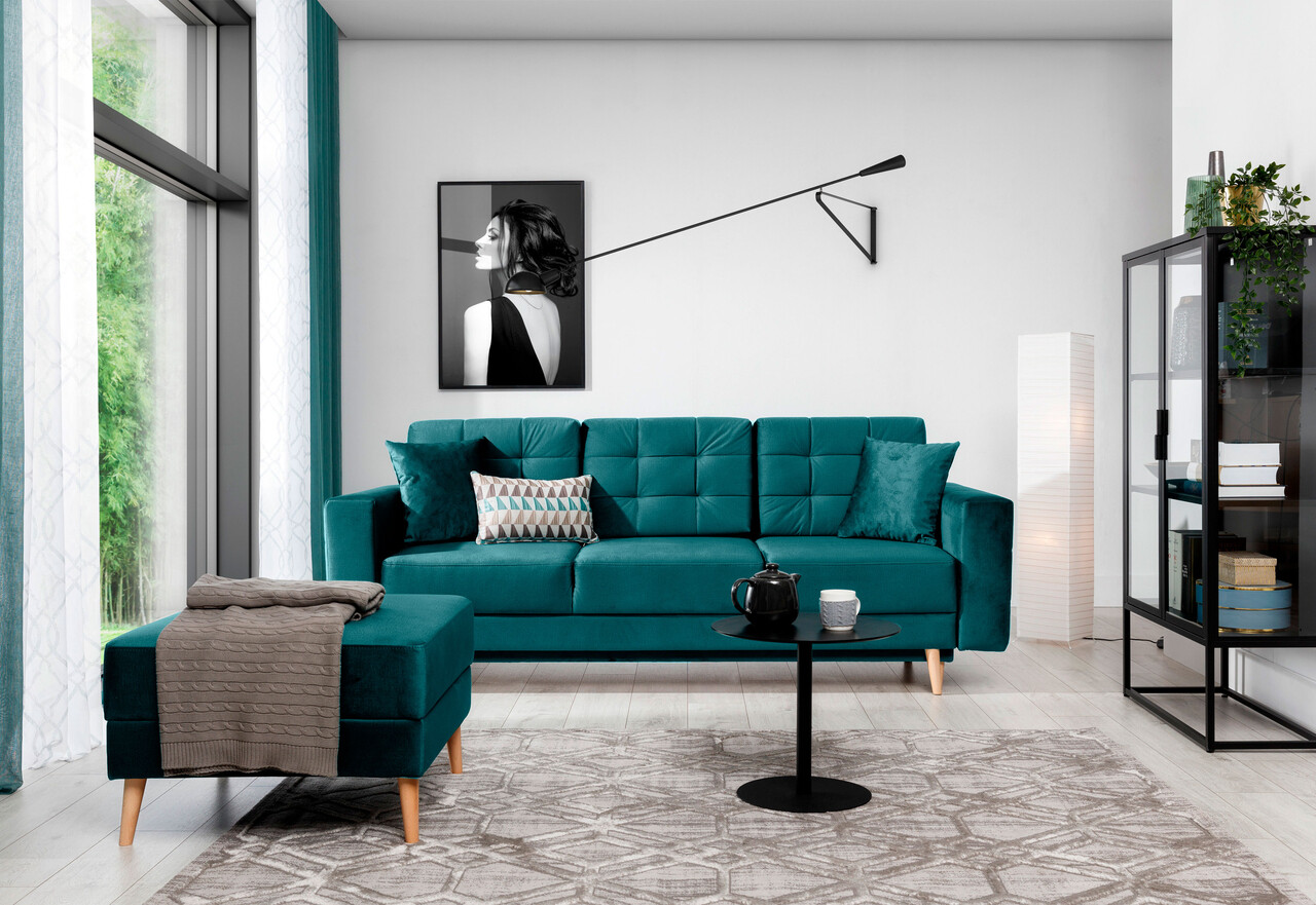 Canapea extensibila 3 locuri ELTAP, Ask20, Asgard, 233x92x93 cm, lemn/poliester, verde