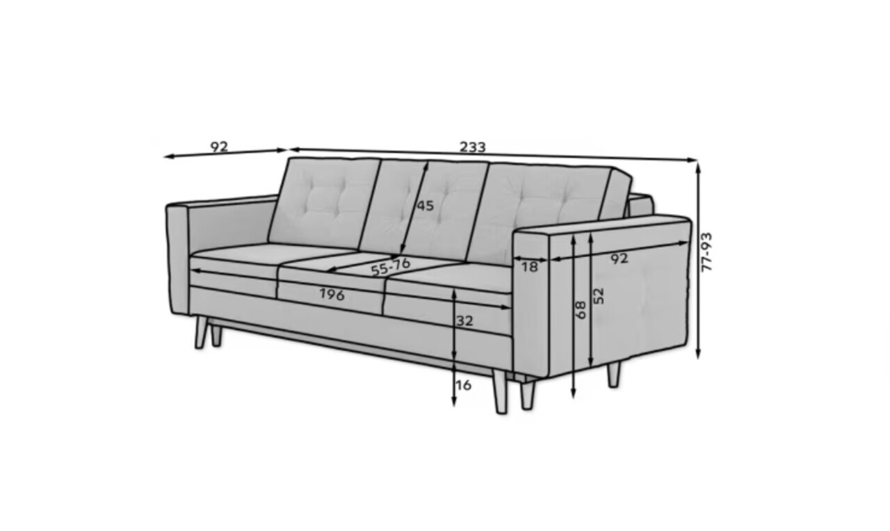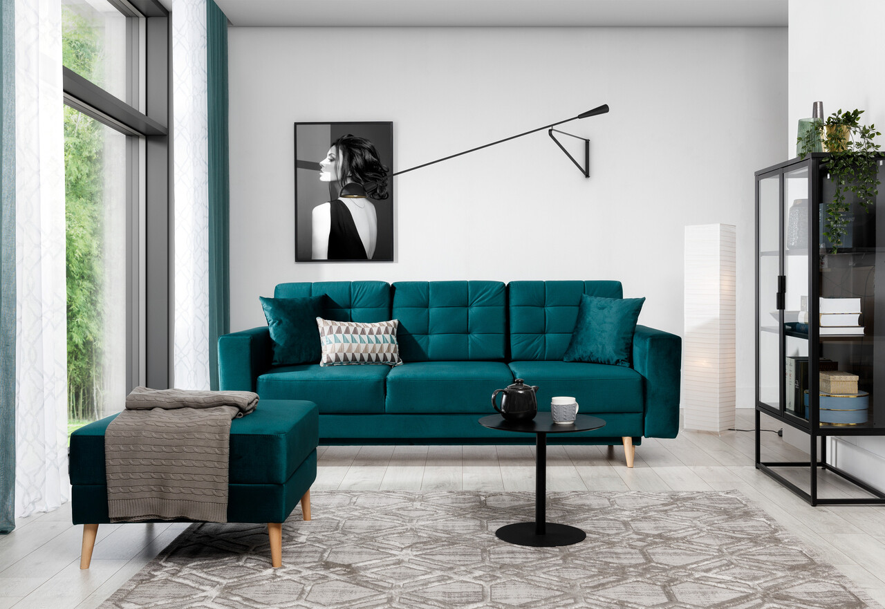 Canapea extensibila 3 locuri ELTAP, Ask21, Asgard, 233x92x93 cm, lemn/poliester, verde