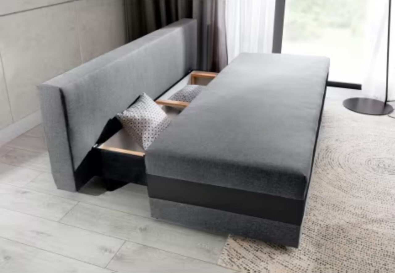 Canapea extensibila 3 locuri ELTAP, Calia, 195x86x83 cm, lemn/poliester, gri/negru