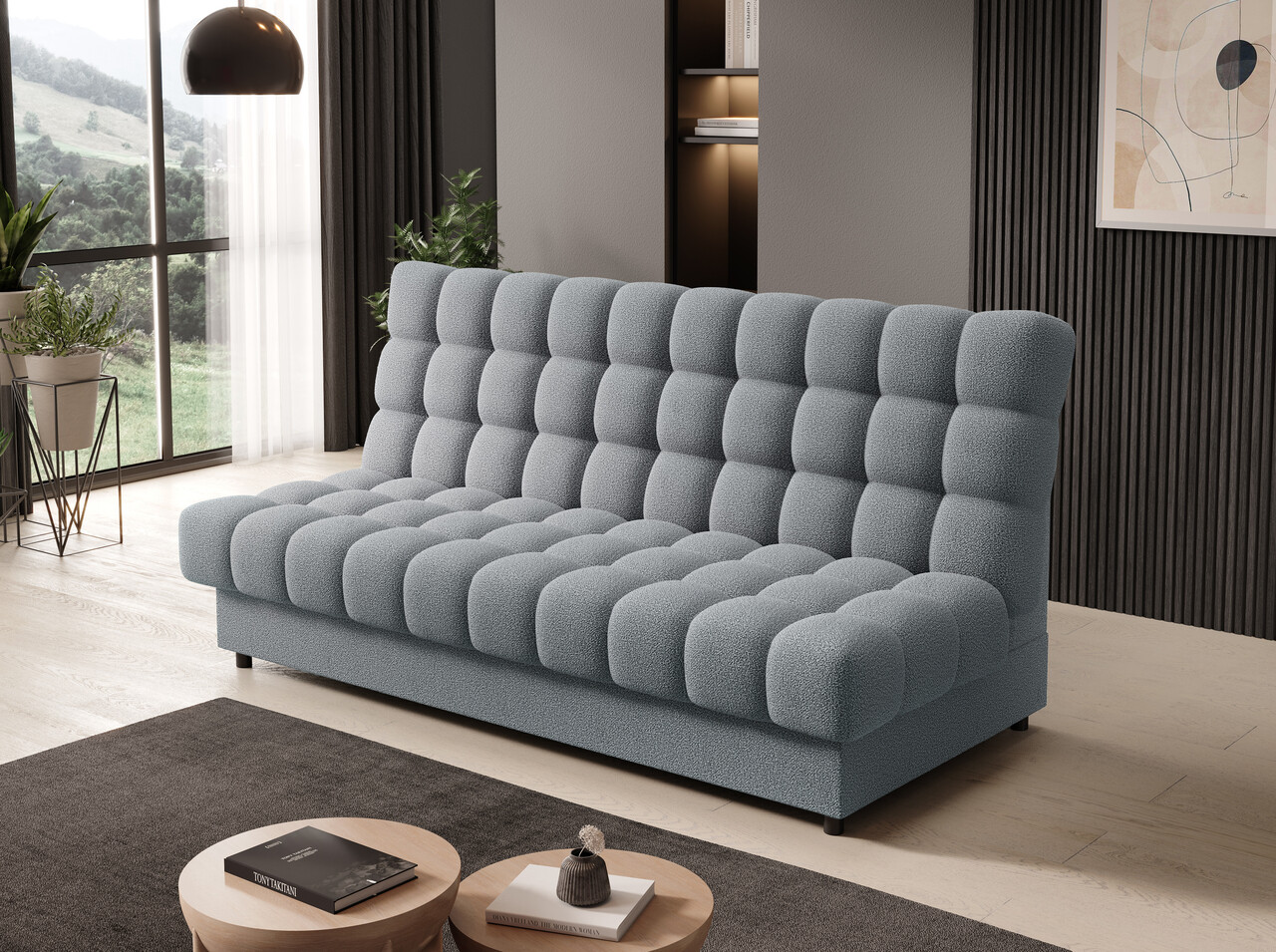 Canapea extensibila 3 locuri ELTAP, Clareta, 197x95x96 cm, lemn/poliester, gri deschis