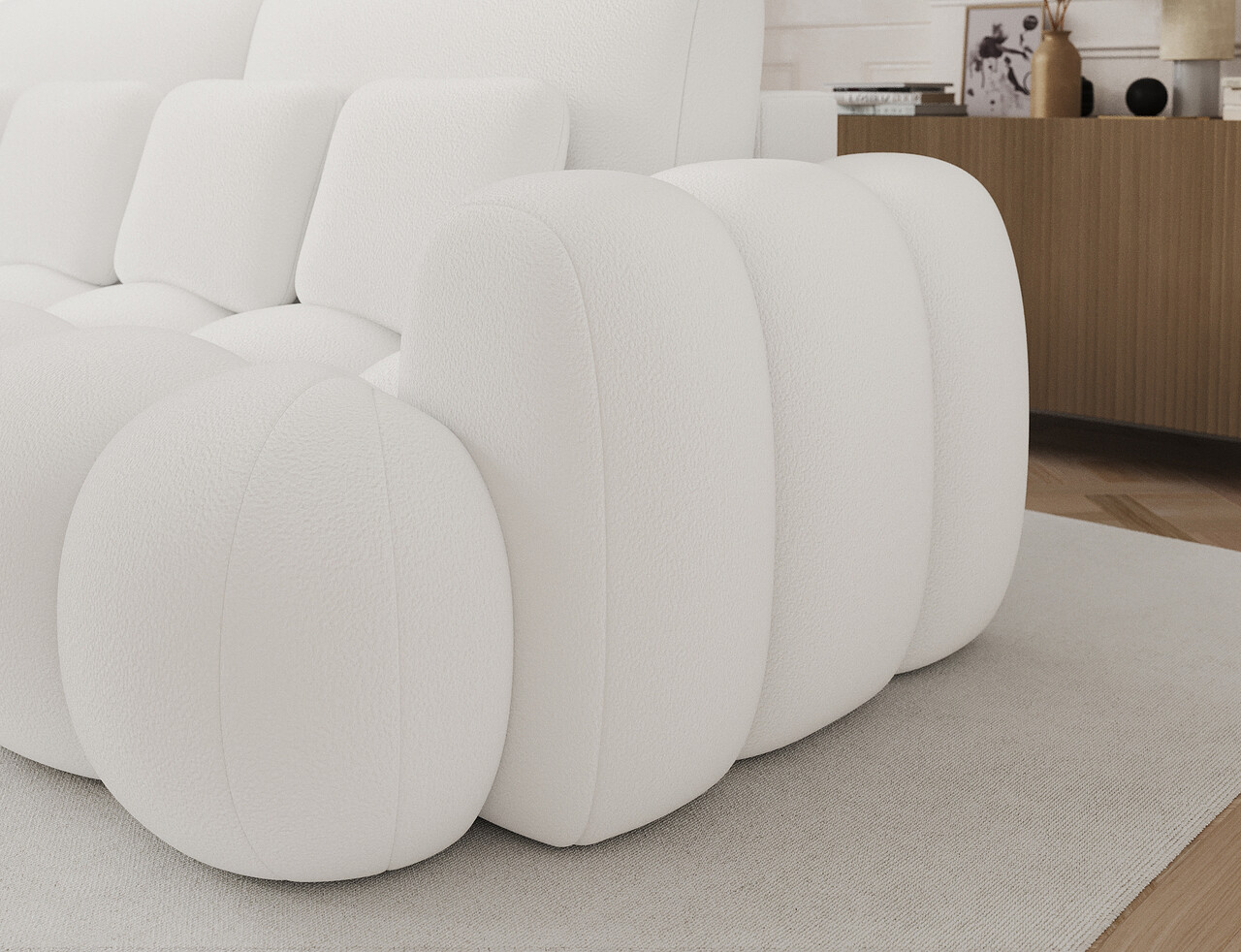 Canapea extensibila 3 locuri ELTAP, Cotonn, 256x119x105 cm, lemn/poliester, alb