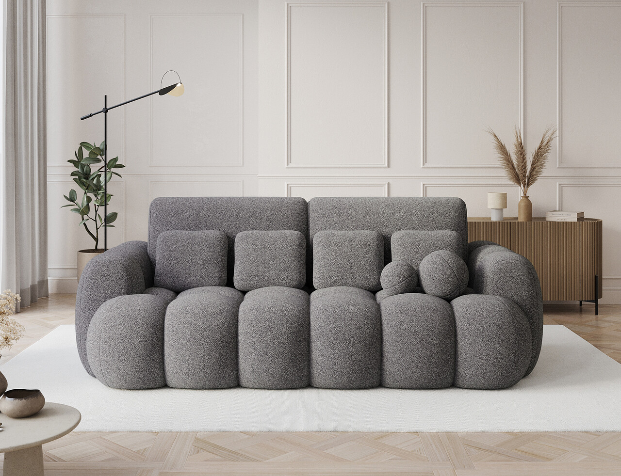 Canapea extensibila 3 locuri ELTAP, Cotonn, 256x119x105 cm, lemn/poliester, gri inchis