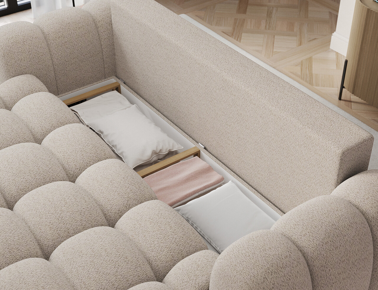 Canapea extensibila 3 locuri ELTAP, Cotonn, 256x119x105 cm, lemn/poliester, bej deschis