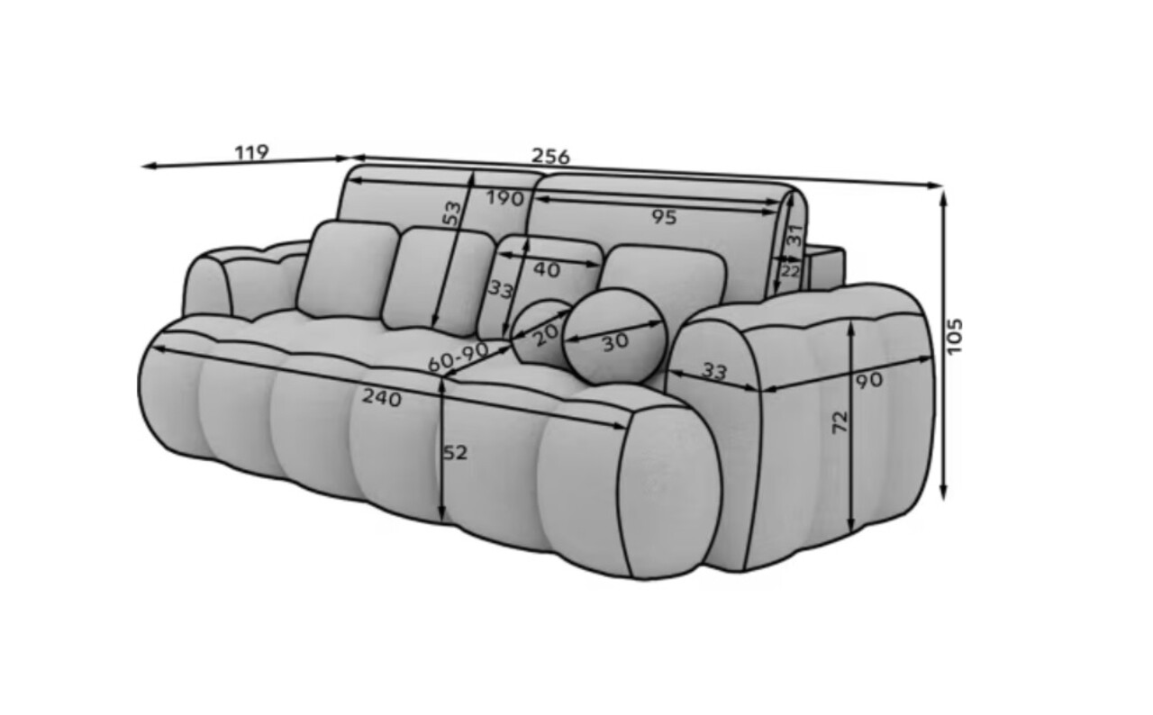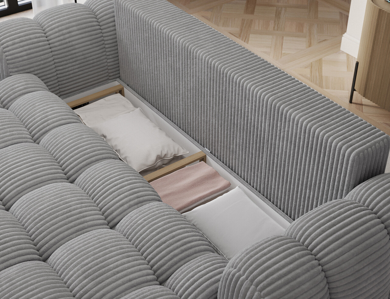 Canapea extensibila 3 locuri ELTAP, Cotonn, 256x119x105 cm, lemn/poliester, gri deschis