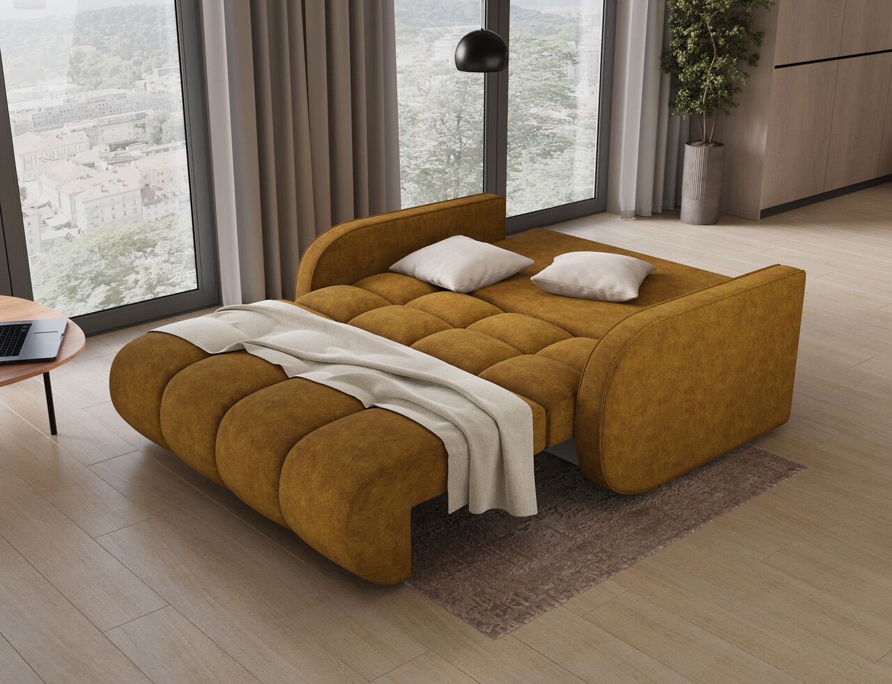 Canapea extensibila 3 locuri ELTAP, Deverio, 154x103x83 cm, lemn/poliester, mustar