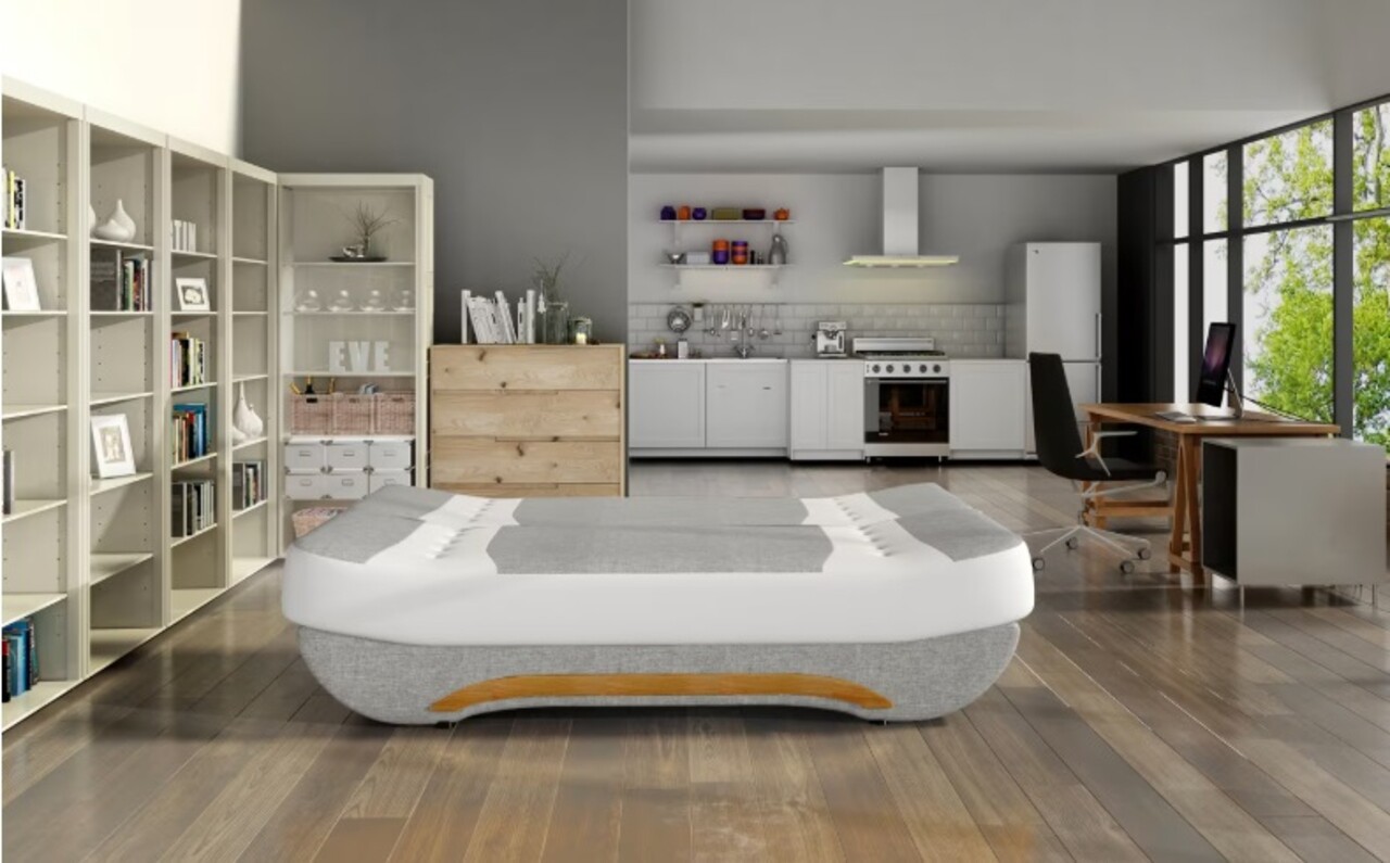Canapea extensibila 3 locuri ELTAP, Ewa II, 189x90x88 cm, lemn/poliester, gri deschis/alb