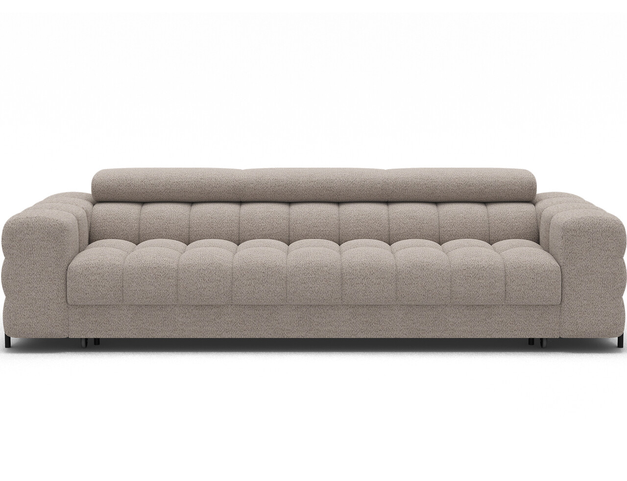 Canapeaua Festello este o piesa de mobilier eleganta si moderna care impresioneaza prin design, confort si functionalitate. Sezutul lat, capitonat, cu o inaltime de 47 cm, impreuna cu tetierele reglabile, asigura un confort maxim in utilizarea zilnica, iar spatarul tapitat face ca aceasta sa arate impecabil din orice unghi, chiar si atunci cand este amplasata in centrul livingului. Datorita mecanismului de extindere Puma, canapeaua se extinde rapid si usor, oferind o suprafata de dormit de 123x200 cm, ceea ce o transforma intr-o solutie practica atat pentru oaspeti, cat si pentru relaxarea zilnica. Picioarele stabile din metal negru, cu o inaltime de 9 cm, adauga un caracter modern si faciliteaza curatenia. Canapeaua Festello, cu dimensiunile de 260x100x96 cm, imbina stilul, confortul si calitatea, fiind alegerea ideala pentru orice interior contemporan.