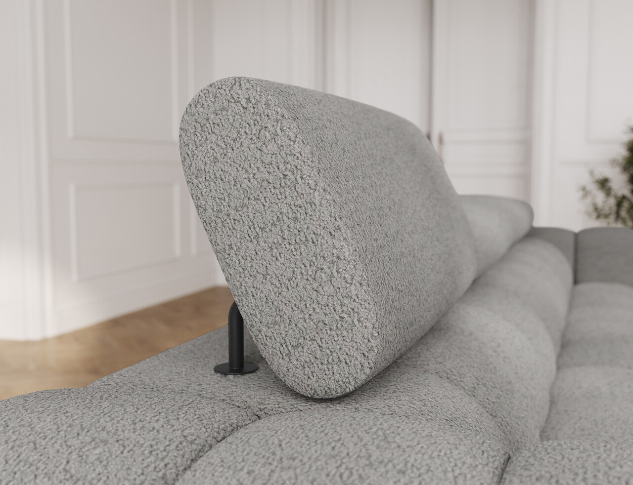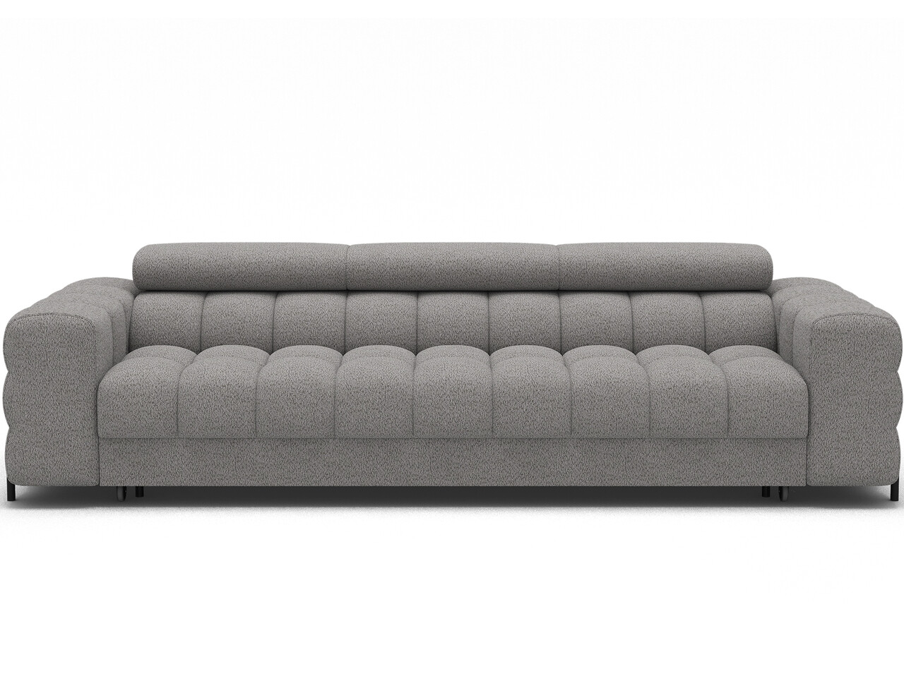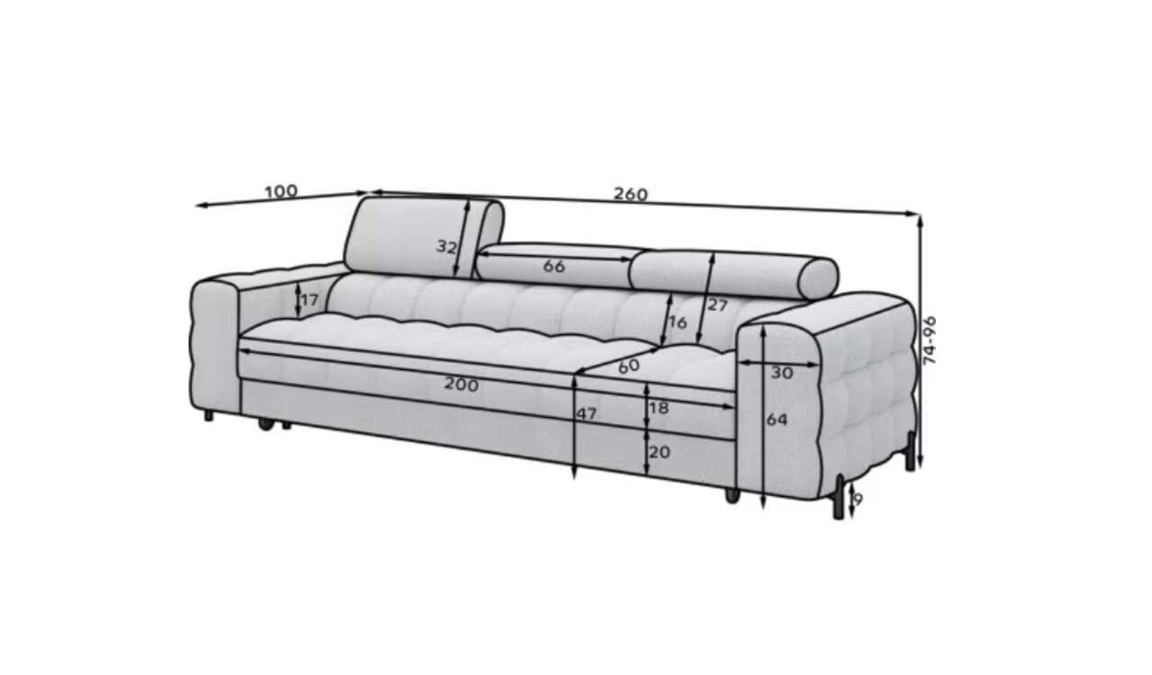 Canapeaua Festello este o piesa de mobilier eleganta si moderna care impresioneaza prin design, confort si functionalitate. Sezutul lat, capitonat, cu o inaltime de 47 cm, impreuna cu tetierele reglabile, asigura un confort maxim in utilizarea zilnica, iar spatarul tapitat face ca aceasta sa arate impecabil din orice unghi, chiar si atunci cand este amplasata in centrul livingului. Datorita mecanismului de extindere Puma, canapeaua se extinde rapid si usor, oferind o suprafata de dormit de 123x200 cm, ceea ce o transforma intr-o solutie practica atat pentru oaspeti, cat si pentru relaxarea zilnica. Picioarele stabile din metal negru, cu o inaltime de 9 cm, adauga un caracter modern si faciliteaza curatenia. Canapeaua Festello, cu dimensiunile de 260x100x96 cm, imbina stilul, confortul si calitatea, fiind alegerea ideala pentru orice interior contemporan.