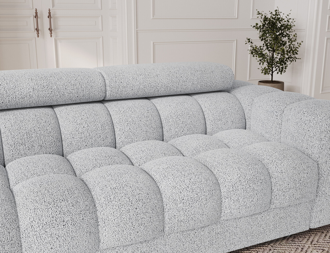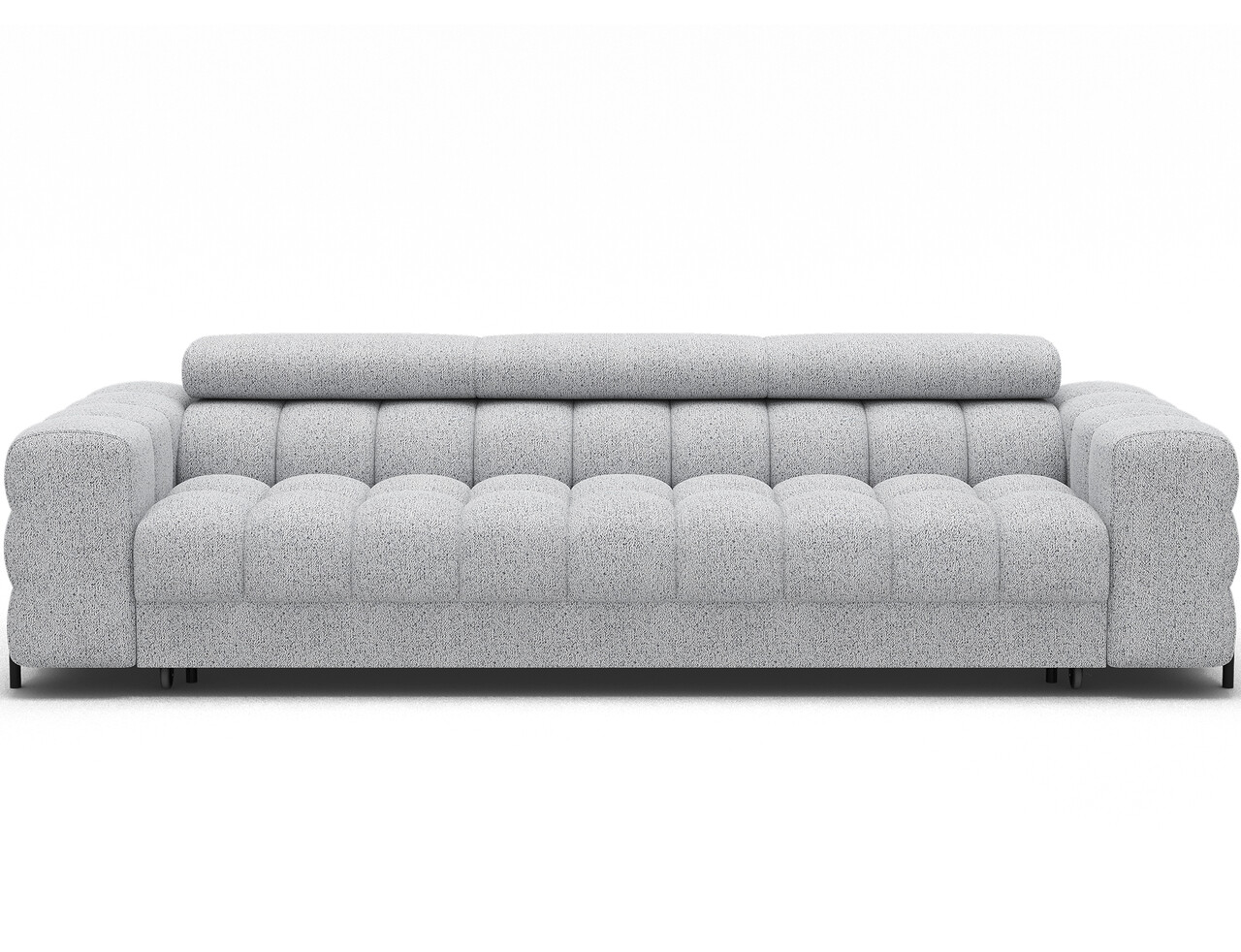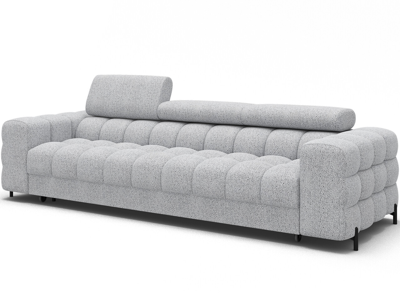 Canapeaua Festello este o piesa de mobilier eleganta si moderna care impresioneaza prin design, confort si functionalitate. Sezutul lat, capitonat, cu o inaltime de 47 cm, impreuna cu tetierele reglabile, asigura un confort maxim in utilizarea zilnica, iar spatarul tapitat face ca aceasta sa arate impecabil din orice unghi, chiar si atunci cand este amplasata in centrul livingului. Datorita mecanismului de extindere Puma, canapeaua se extinde rapid si usor, oferind o suprafata de dormit de 123x200 cm, ceea ce o transforma intr-o solutie practica atat pentru oaspeti, cat si pentru relaxarea zilnica. Picioarele stabile din metal negru, cu o inaltime de 9 cm, adauga un caracter modern si faciliteaza curatenia. Canapeaua Festello, cu dimensiunile de 260x100x96 cm, imbina stilul, confortul si calitatea, fiind alegerea ideala pentru orice interior contemporan.