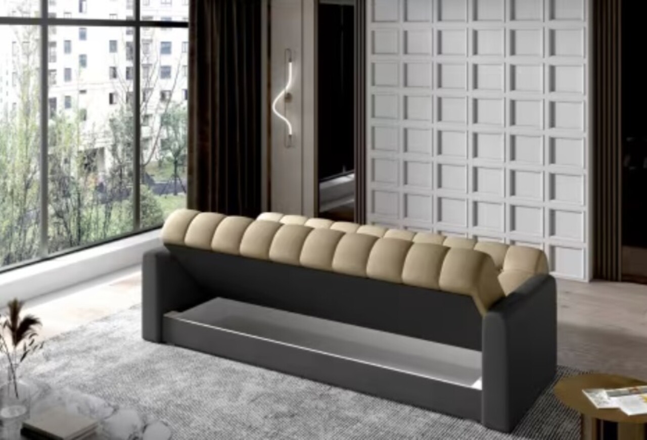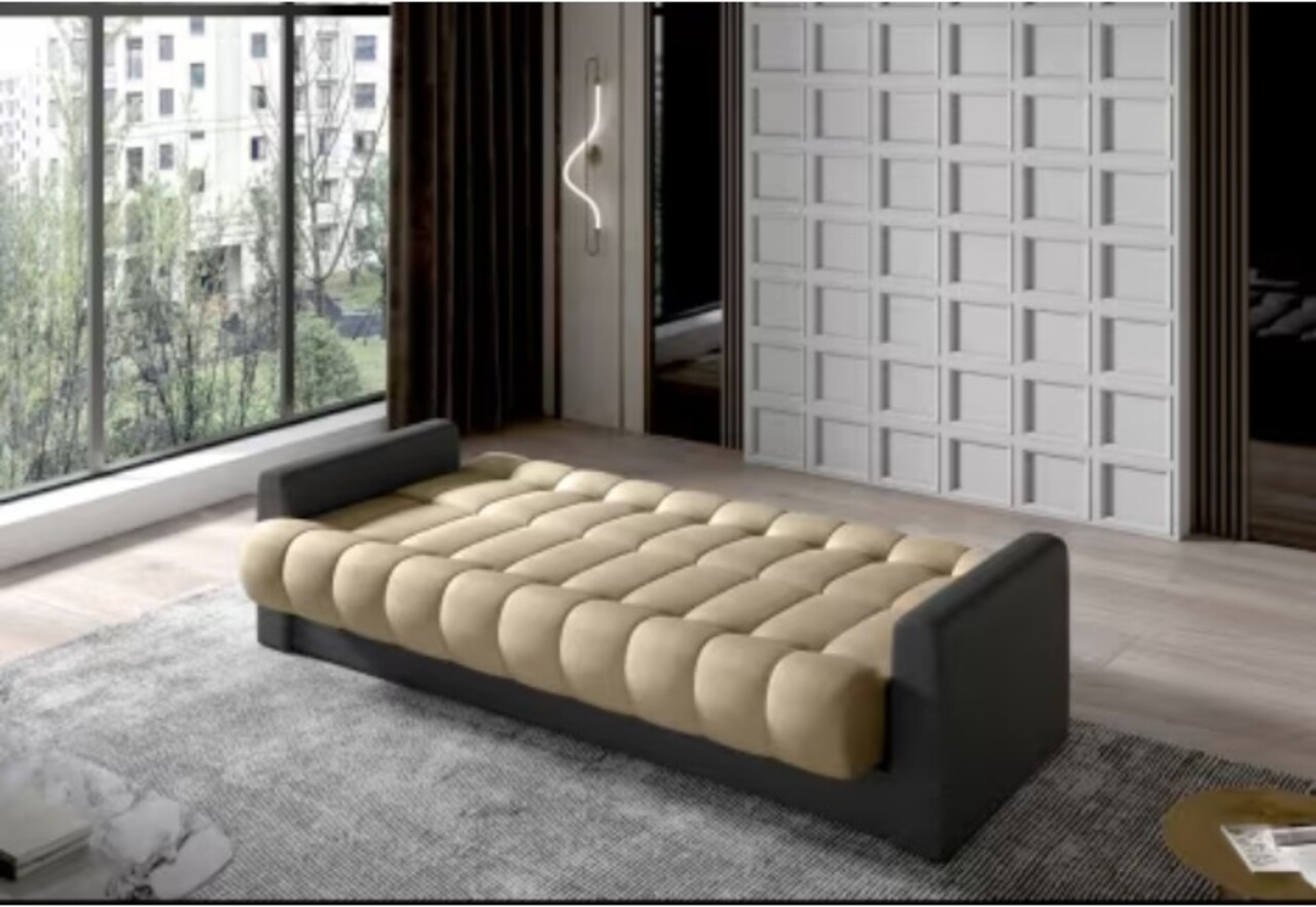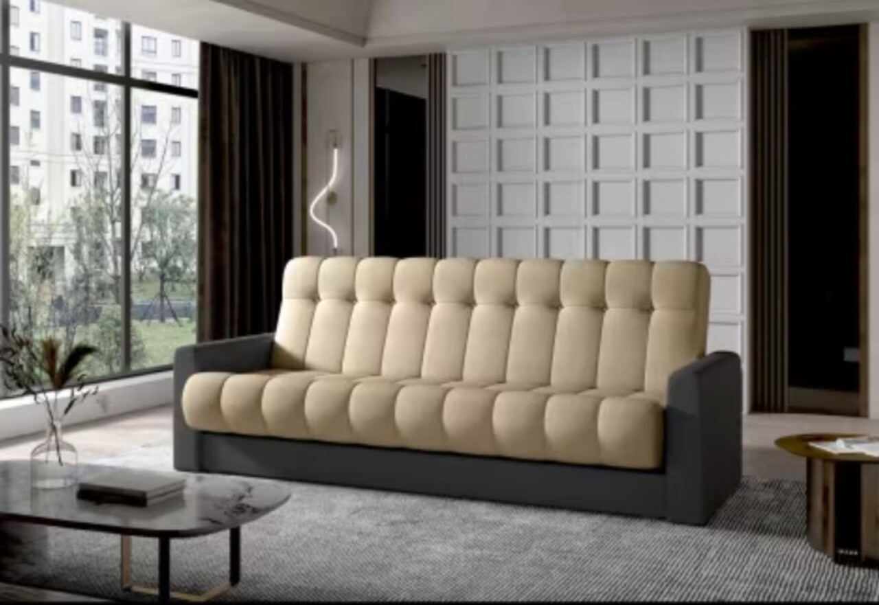 Canapea extensibila 3 locuri ELTAP, Garett, 212x85x90 cm, lemn/poliester, maro deschis/gri inchis