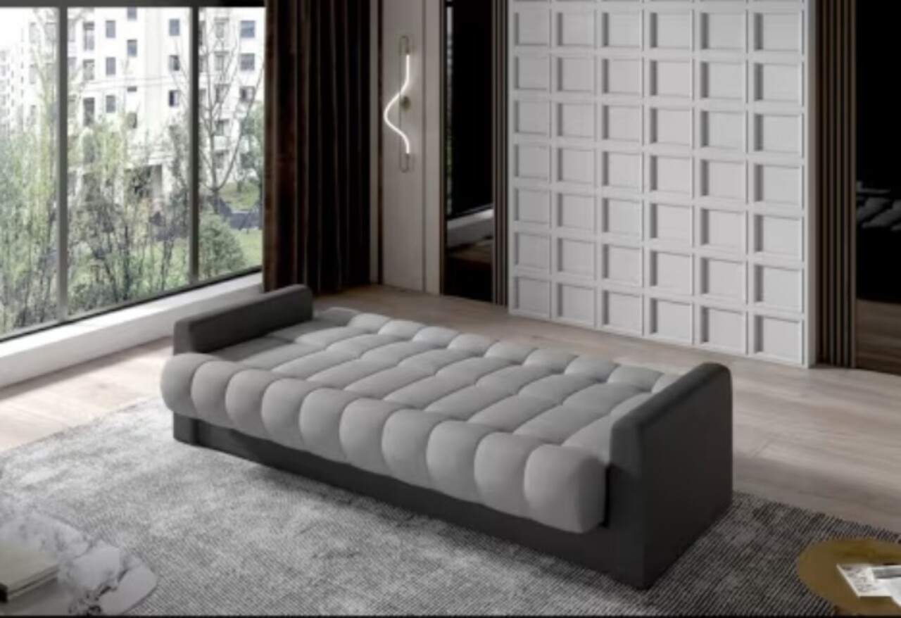 Canapea extensibila 3 locuri ELTAP, Garett, 212x85x90 cm, lemn/poliester, gri deschis/gri inchis