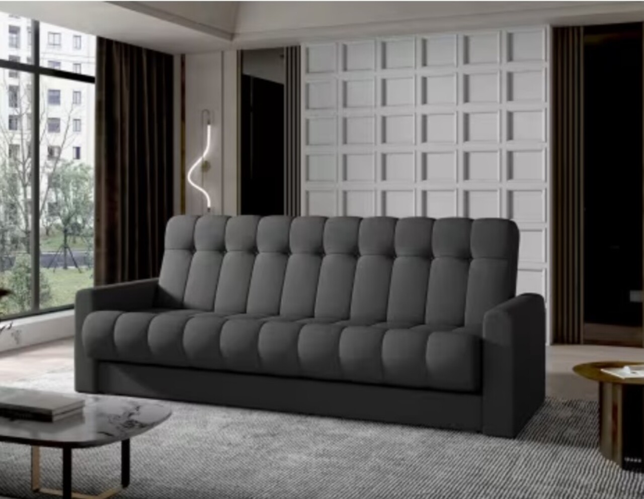 Canapea extensibila 3 locuri ELTAP, Garett, 212x85x90 cm, lemn/poliester, gri inchis/negru