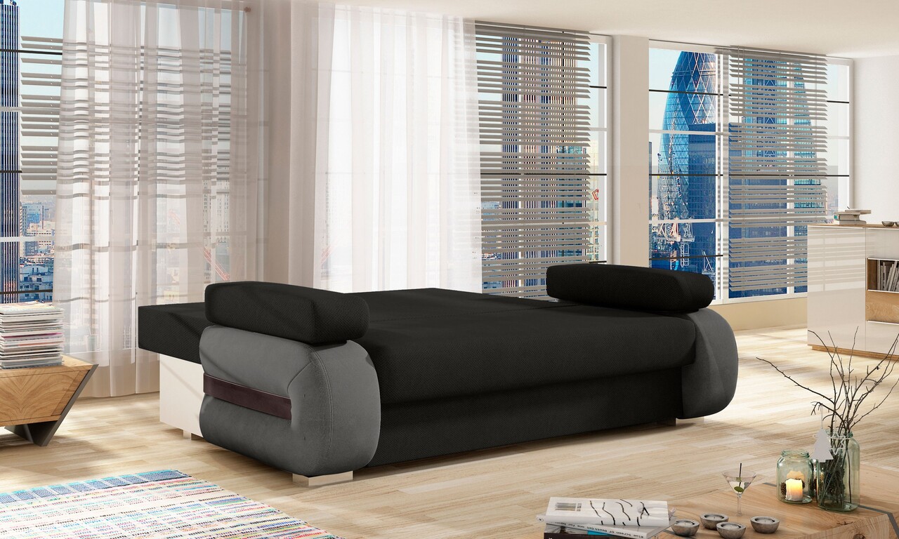 Canapea extensibila 3 locuri ELTAP, Laura, 202x79x84 cm, lemn/poliester, negru/gri inchis