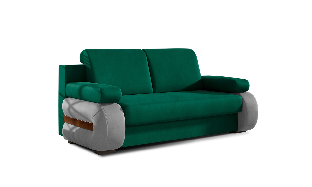 Canapea extensibila 3 locuri ELTAP, Laura, 202x79x84 cm, lemn/poliester, verde inchis/gri deschis