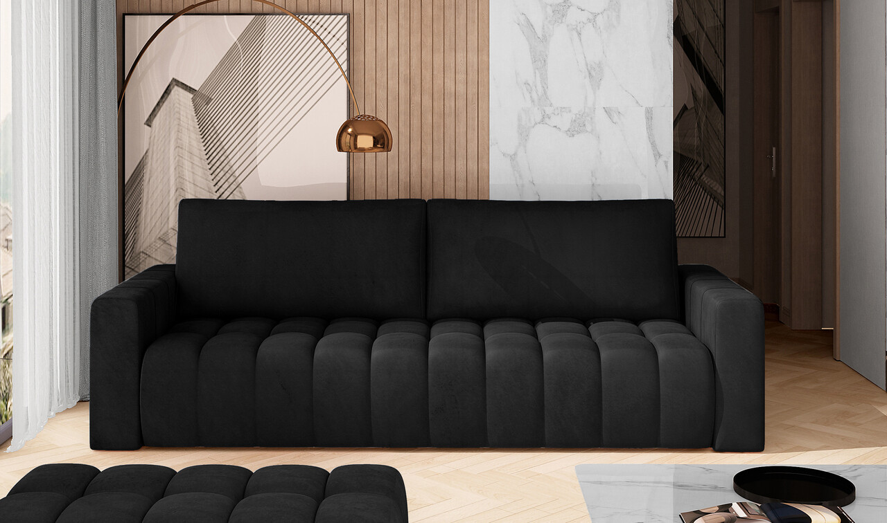 Canapea extensibila 3 locuri ELTAP, Laz15, Lazaro, 247x97x92 cm, lemn/poliester, negru