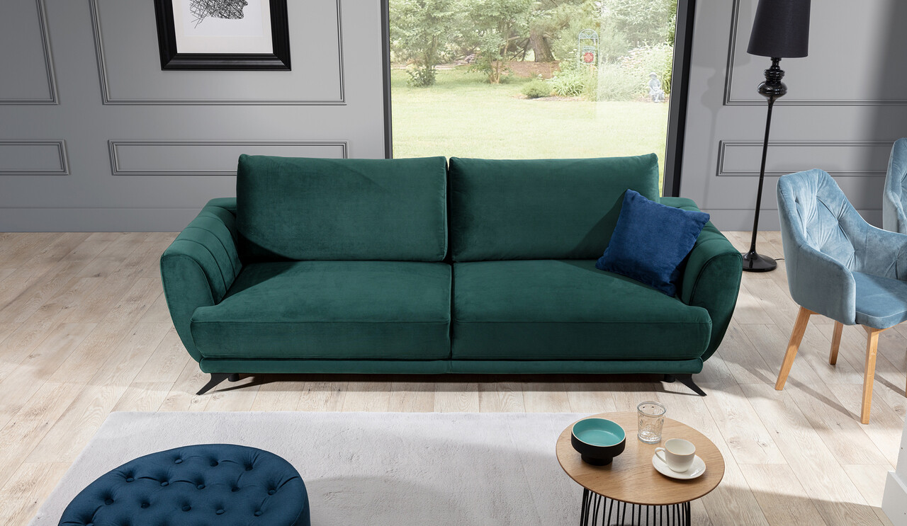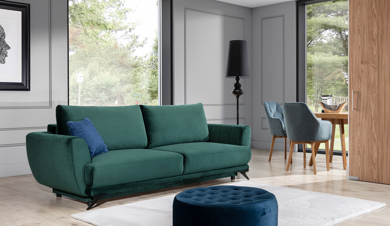 Canapea extensibila 3 locuri ELTAP, Meg28, Megis, 242x95x90 cm, lemn/poliester, verde inchis