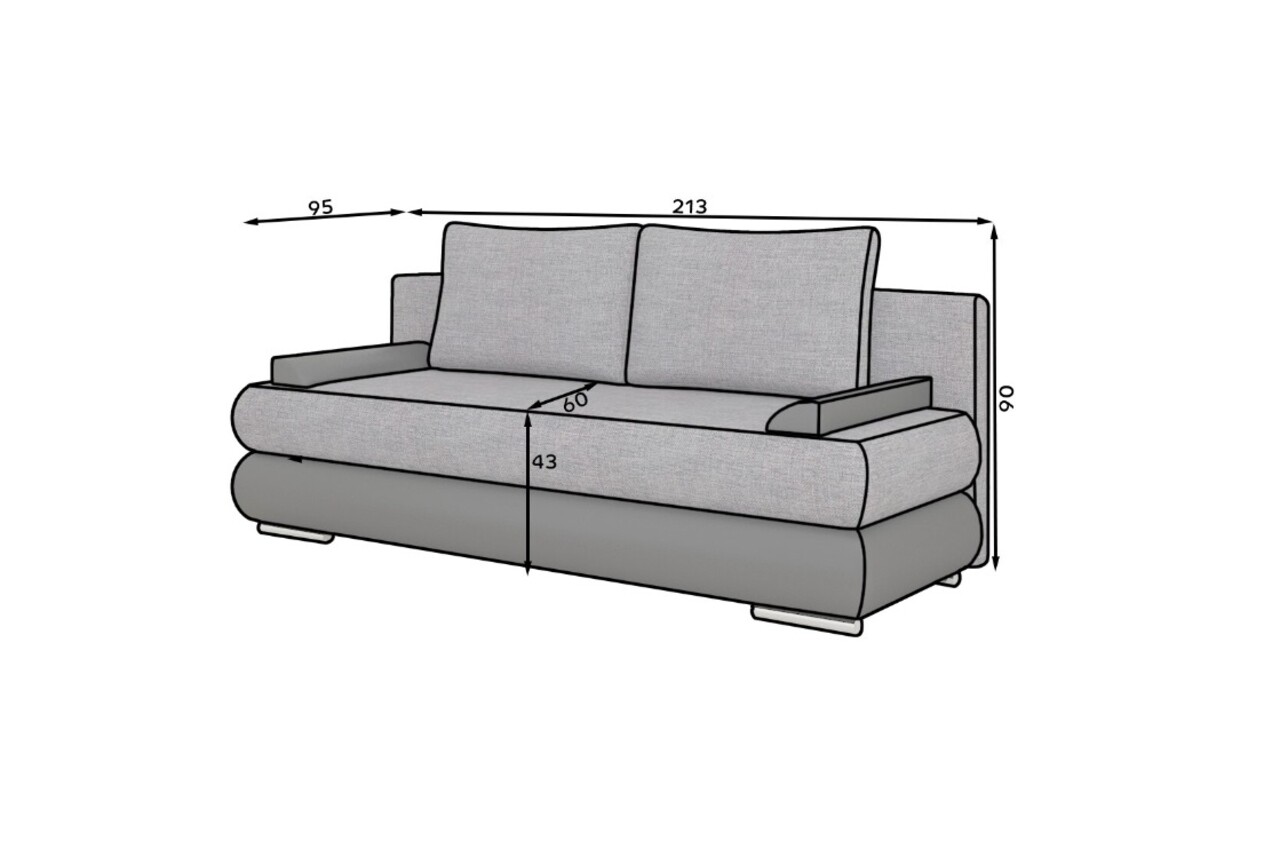 Canapea extensibila 3 locuri ELTAP, Milo, 213x95x90 cm, lemn/poliester, gri inchis/negru