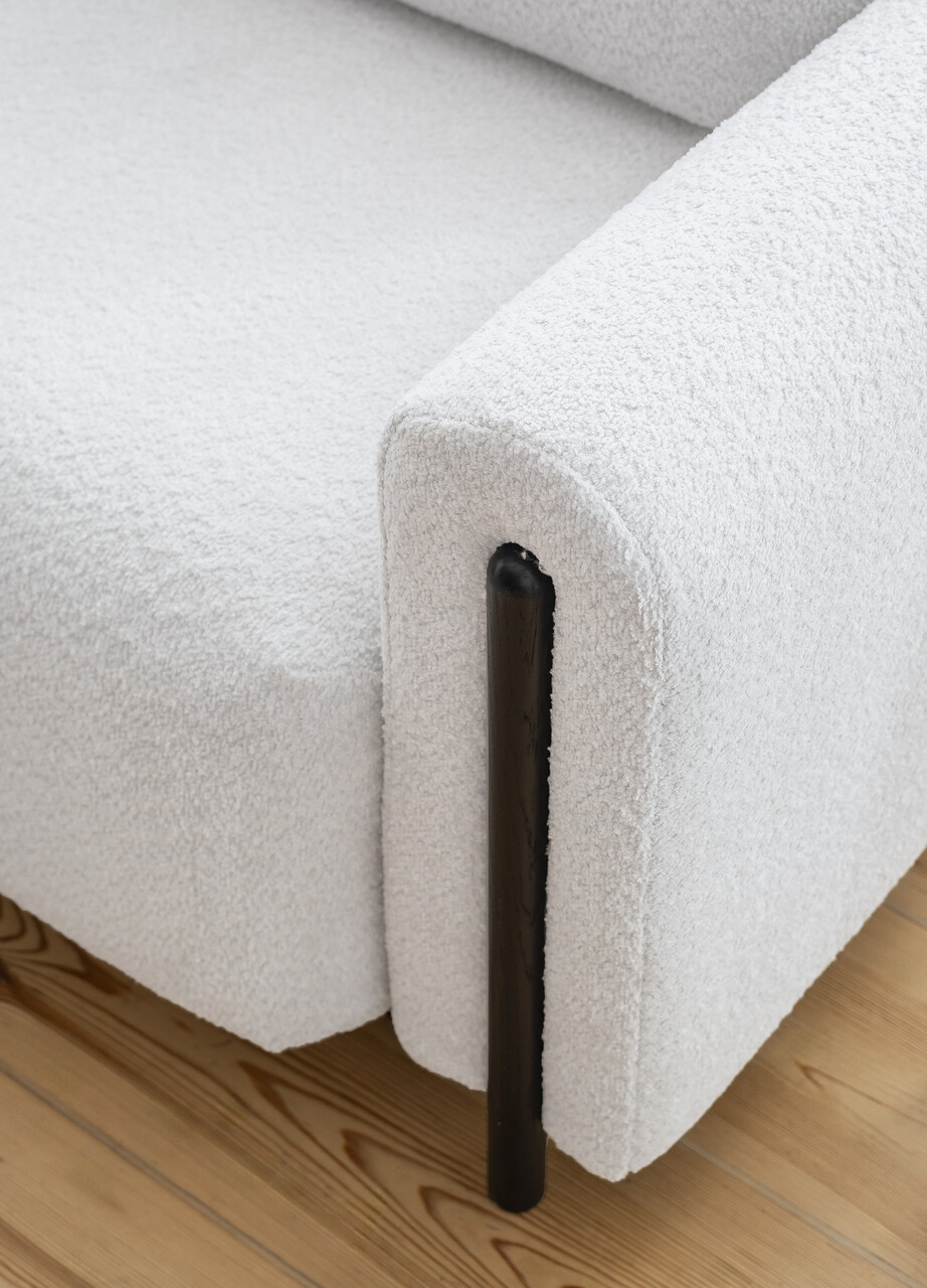Un detaliu distinctiv al modelului Arcadova il reprezinta cotierele semicirculare care ii accentueaza caracterul sofisticat. Canapeaua este sustinuta de picioare robuste, realizate din lemn masiv de culoare neagra, cu o inaltime de 12 cm, oferindu-i atat stabilitate, cat si un aspect rafinat.