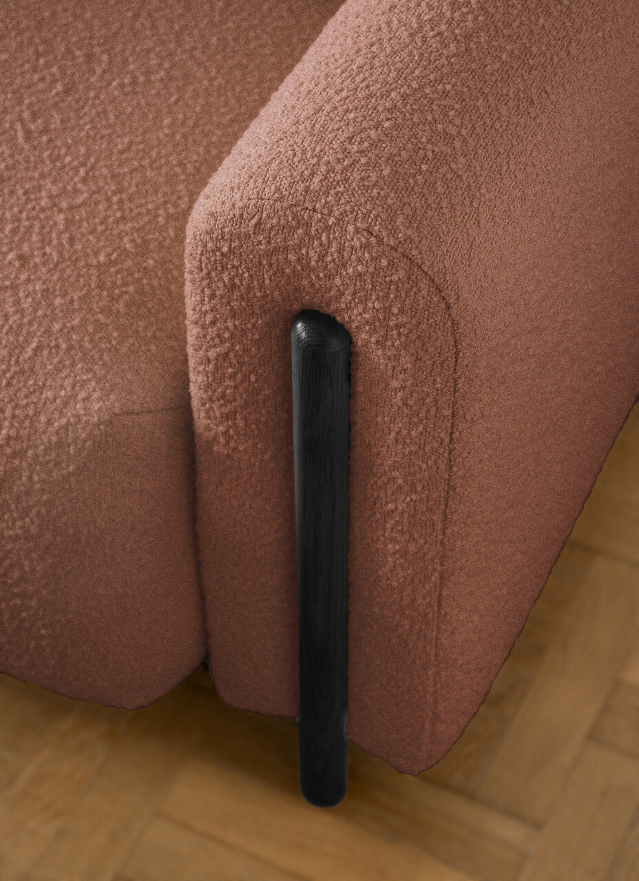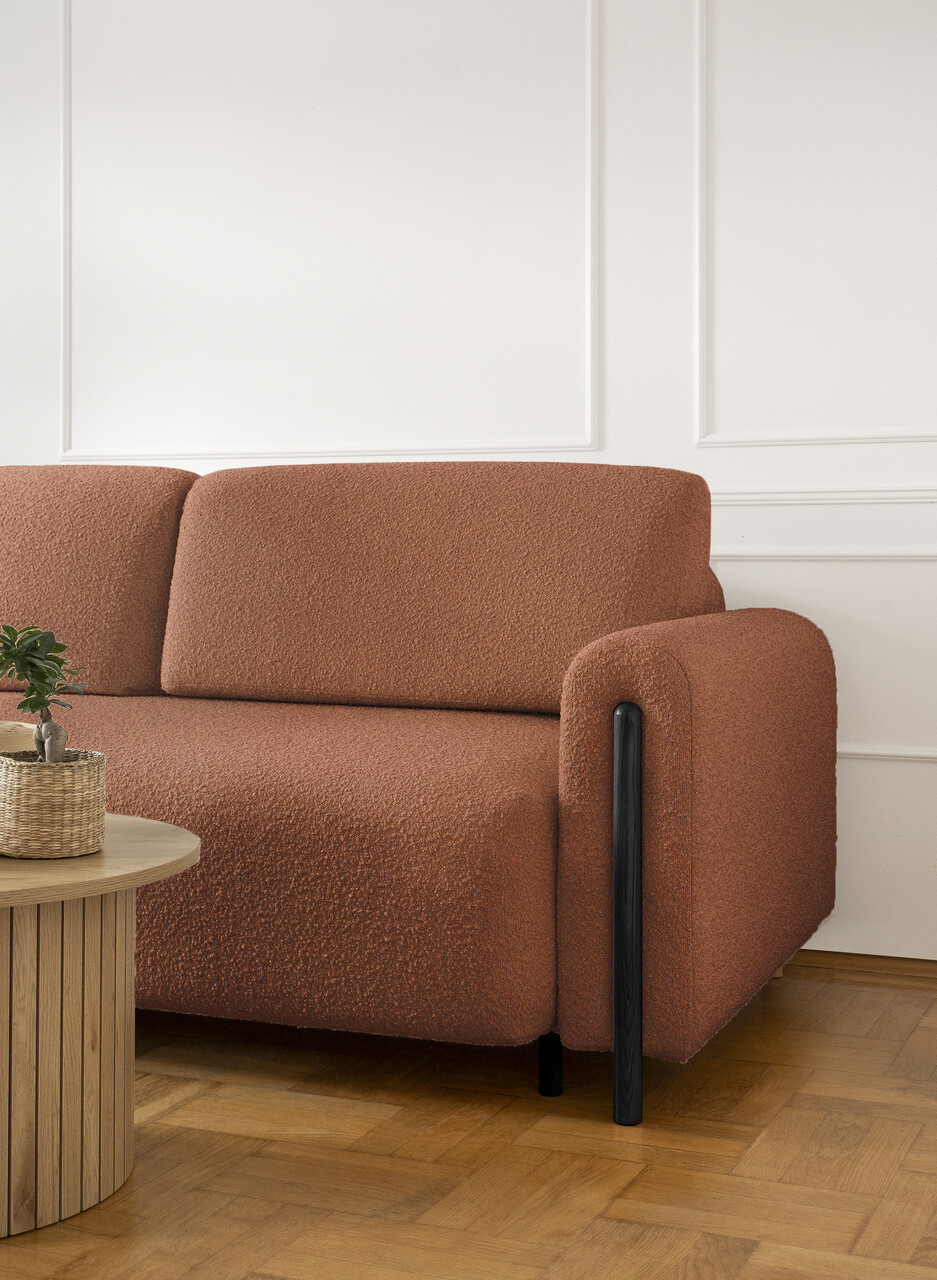 Un detaliu distinctiv al modelului Arcadova il reprezinta cotierele semicirculare care ii accentueaza caracterul sofisticat. Canapeaua este sustinuta de picioare robuste, realizate din lemn masiv de culoare neagra, cu o inaltime de 12 cm, oferindu-i atat stabilitate, cat si un aspect rafinat.