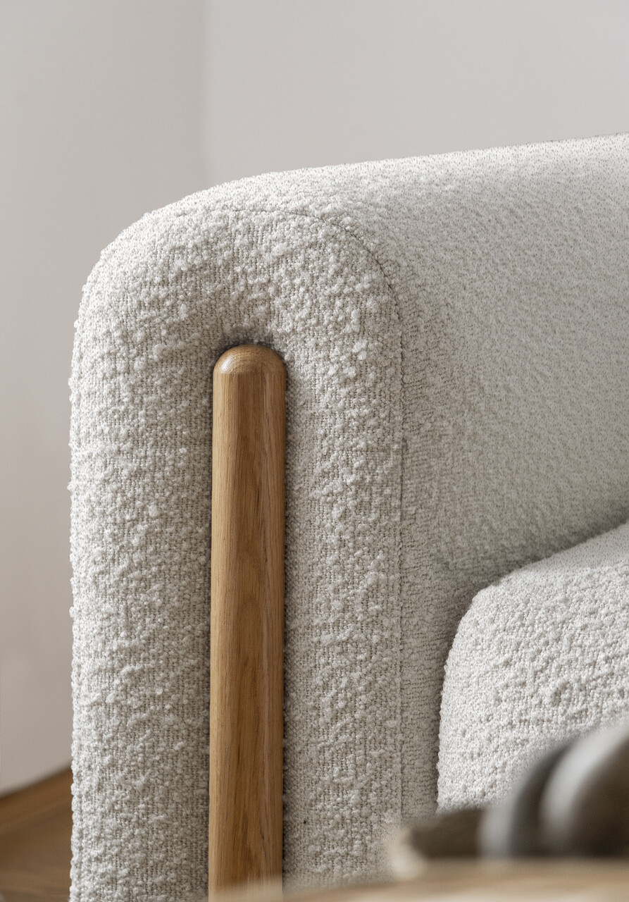Un detaliu distinctiv al modelului Arcadova il reprezinta cotierele semicirculare care ii accentueaza caracterul sofisticat. Canapeaua este sustinuta de picioare robuste, realizate din lemn masiv de culoarea stejarului, cu o inaltime de 12 cm, oferindu-i atat stabilitate, cat si un aspect rafinat.
