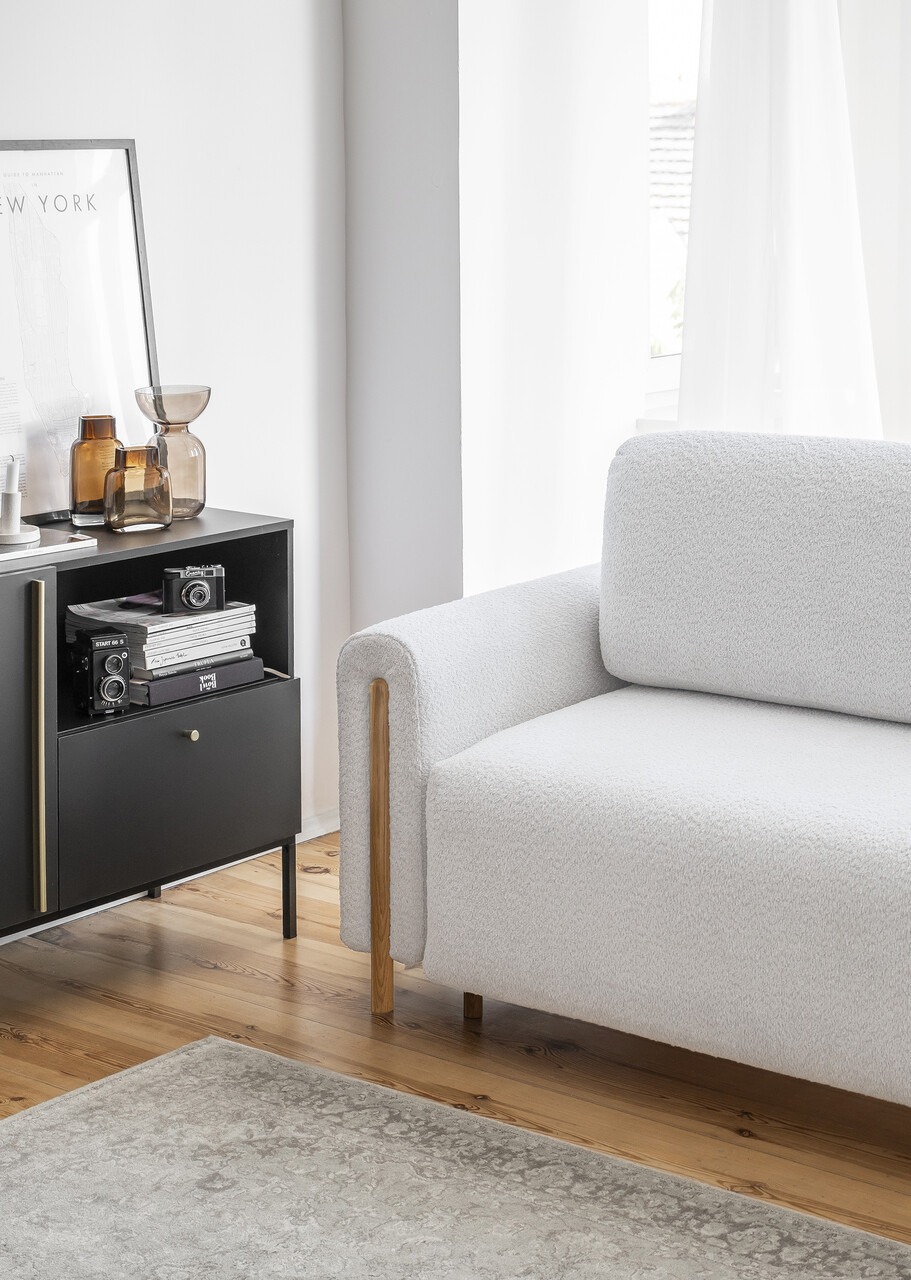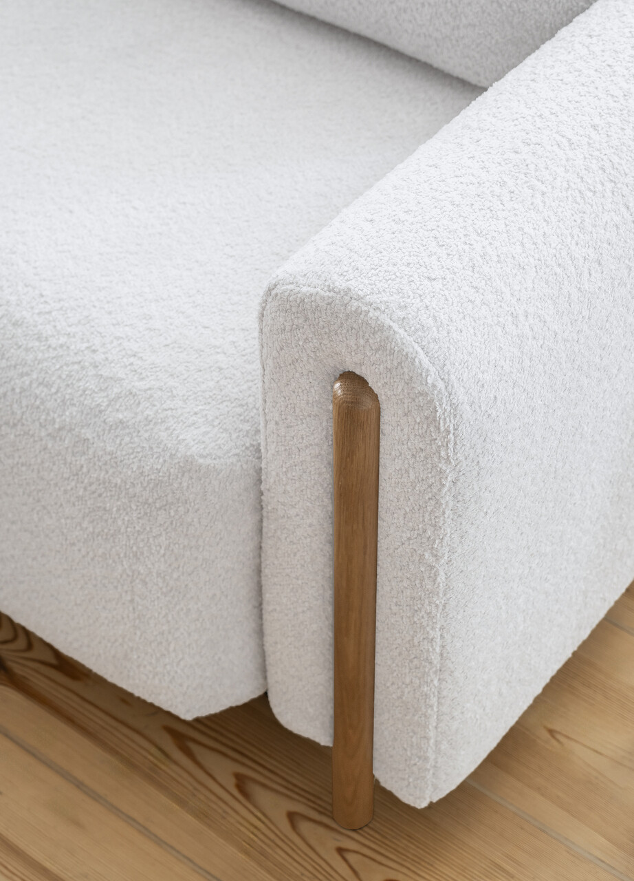 Un detaliu distinctiv al modelului Arcadova il reprezinta cotierele semicirculare care ii accentueaza caracterul sofisticat. Canapeaua este sustinuta de picioare robuste, realizate din lemn masiv de culoarea stejarului, cu o inaltime de 12 cm, oferindu-i atat stabilitate, cat si un aspect rafinat.