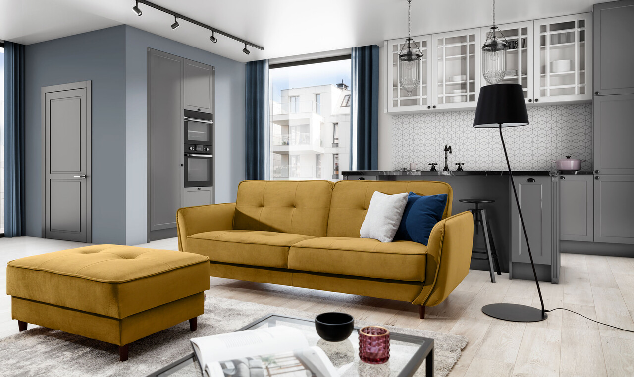Canapea extensibila 3 locuri ELTAP, SO-BEL-41RIV, Bellis, 220x90x83 cm, lemn/poliester, mustar